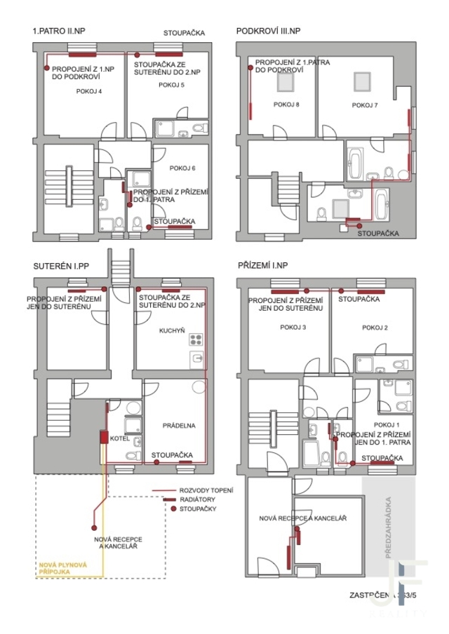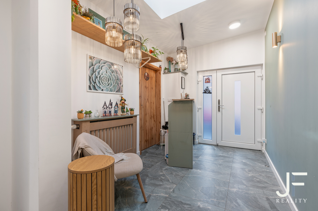 Recepce byla dostavěna letos a vyžaduje drobné dokončovací práce, následně kolaudaci. k recepci náleží ještě malá kancelář a anglický dvorek před domem.