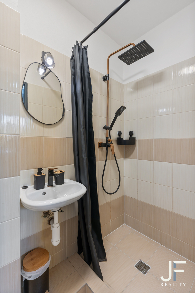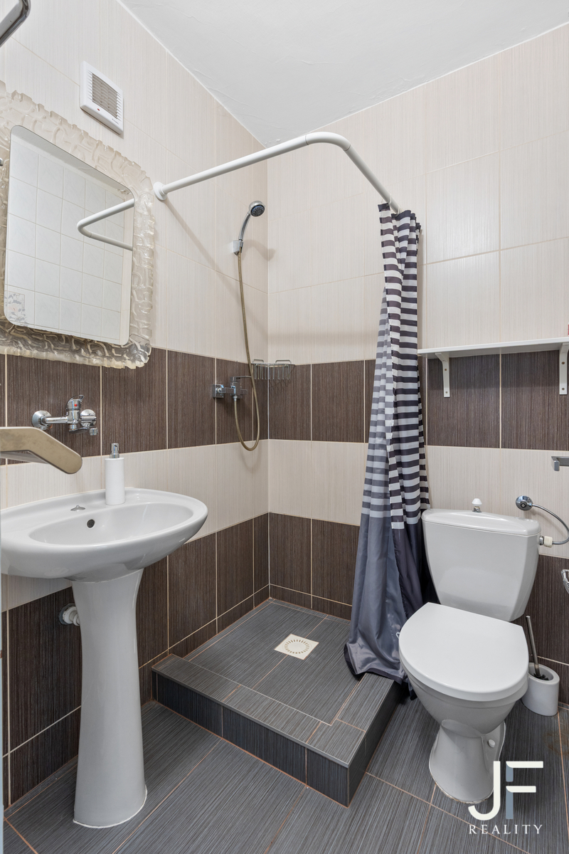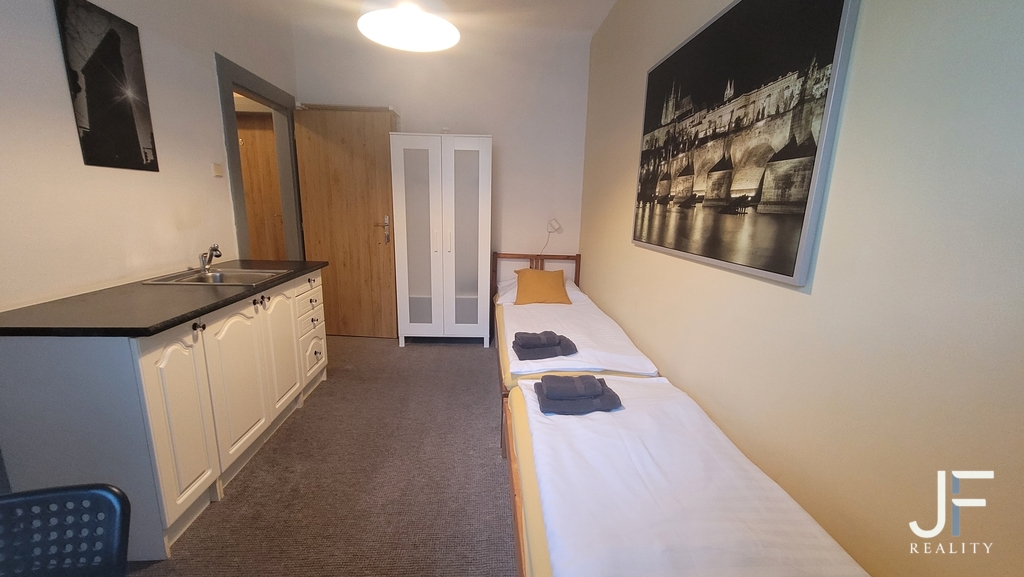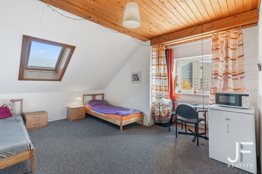 Celkový stav pokojů je průměrný — většina prostor je vhodná k modernizaci, ať už jde o podlahy, obklady nebo sanitu.