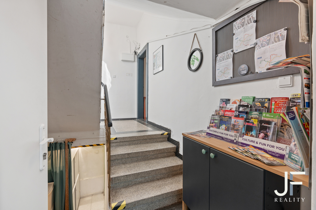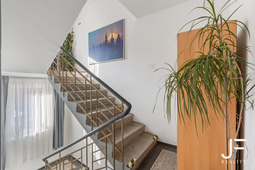 V suterénu domu je obytné zázemí pro správce, kotelna a může zde být dostatek skladovacích prostor pro obyvatele domu, nájemce či majitele.