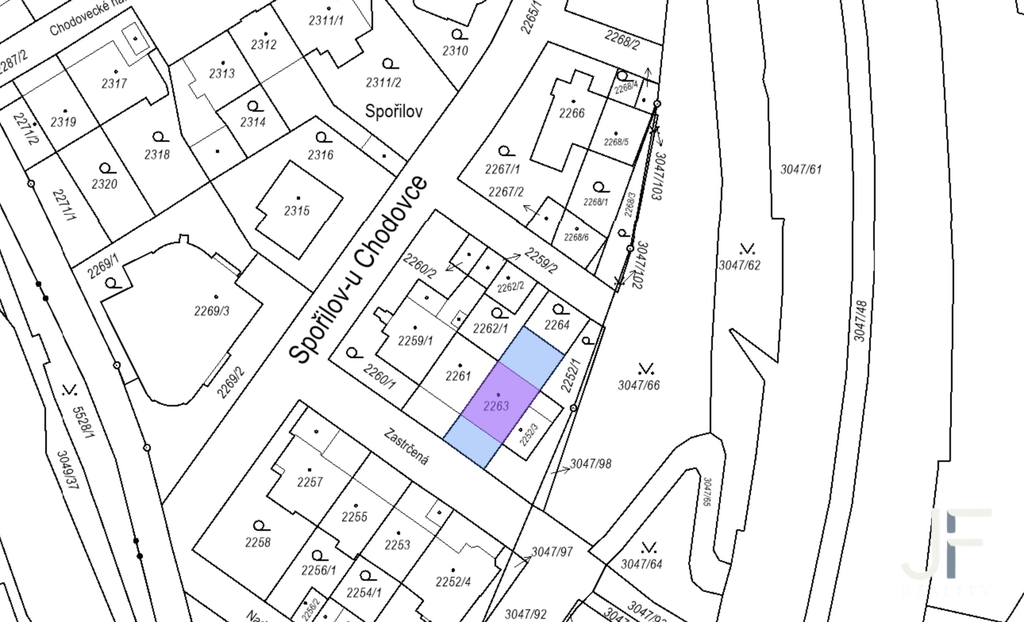 Jedná se vlastně o polovinu dvojdomu a polořadovou stavbu na konci slepé ulice.