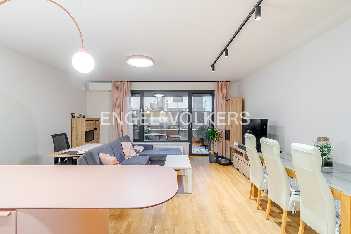 Nabízíme k dlouhodobému pronájmu světlý a plně zařízený byt 2+kk o užitné ploše 71 m² (celkem 90 m²) s terasou, balkonem, garážovým stáním a sklepem. Byt se nachází v 1. nadzemním podlaží moderního rezidenčního projektu Rezidence Závěrka (kolaudace 2012) v jedné z nejatraktivnějších částí Prahy 6 – Břevnov.
