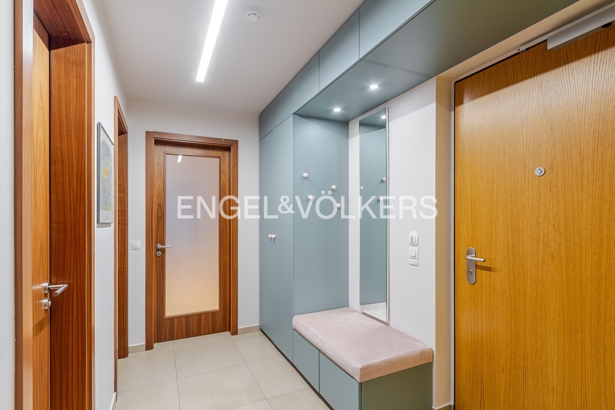 V roce 2025 prošla jednotka výraznou obnovou: zcela nová kuchyně včetně všech spotřebičů a kompletní rekonstrukce vstupního prostoru. Byt působí mimořádně čistě, moderně a vzdušně díky kvalitním dřevěným podlahám a čerstvé výmalbě.