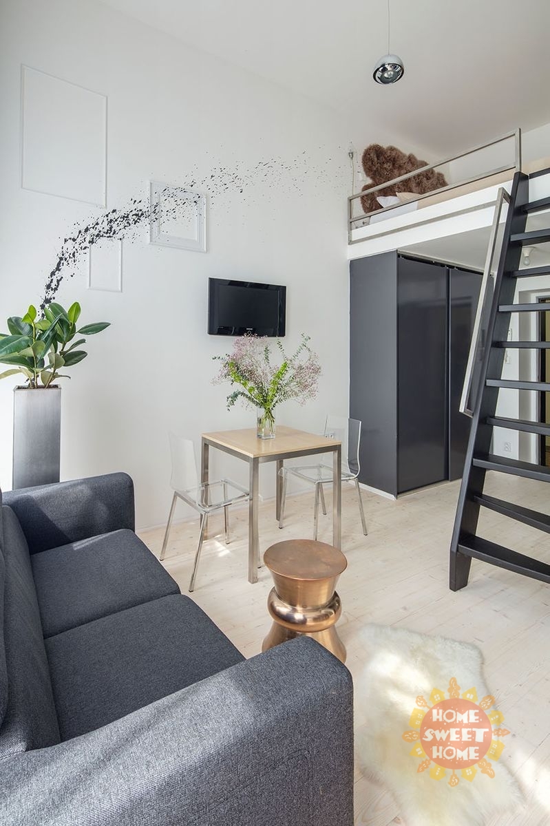 Krásný zařízený byt 1+kk o celkové rozloze 25 m2 ve druhém patře secesní budovy bez výtahu v Residenci Holečkova, Praha 5. Jedná se o plně vybavené studio (manželská postel v horním patře, odpočívárnou se skříní, pohovka, plně vybavená kuchyňská linka, jídelní kout a koupelna se sprchou a samostatnou toaletou. K dispozici TV / SAT / WIFI. V domě jsou možné excelentní služby. Možnost připojení k vysokorychlostního internetu, který zajišťuje plnohodnotnou práci z domova (již zahrnuto v ceně). Jednou týdně průběžné úklidy bytů s výměnou povlečení a ručníků, pohotovostní služba 24/7, recepce denně 9-16hod, možnost využití zrekonstruovaného lobby, které poskytuje příjemné posezení. Byt se nachází v blízkosti tramvajové zastávky U Zvonu, pouhých 5 minut od stanice metra Anděl. Možnost i krátkodobého pronájmu. Bez provize pro RK!