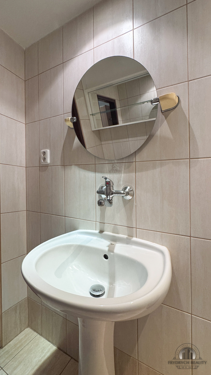 Byt velikosti 30 m² procházel průběžně renovací - má kuchyňskou linku mimo hlavní místnost koupelnu s pračkou a oddělenou toaletu.