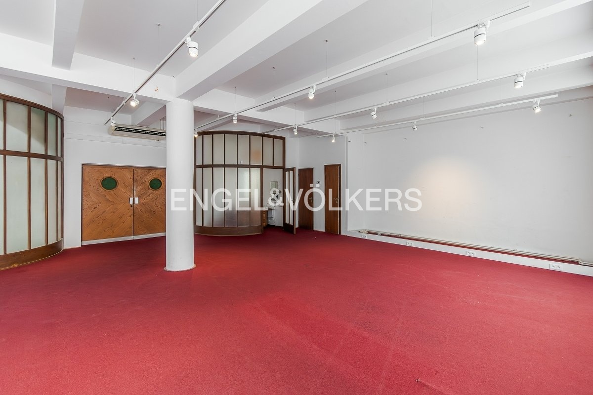 Celková plocha jednotky činí 104 m², z toho prodejní plocha tvoří 92 m². K dispozici je také zázemí: menší kancelář (nebo sklad), vlastní toaleta a komora pro úklidové potřeby. Na podlahách je aktuálně koberec, pod kterým se nacházejí původní parkety. Díky západní orientaci oken do Jungmannova náměstí je kancelář velmi světlá a příjemná.