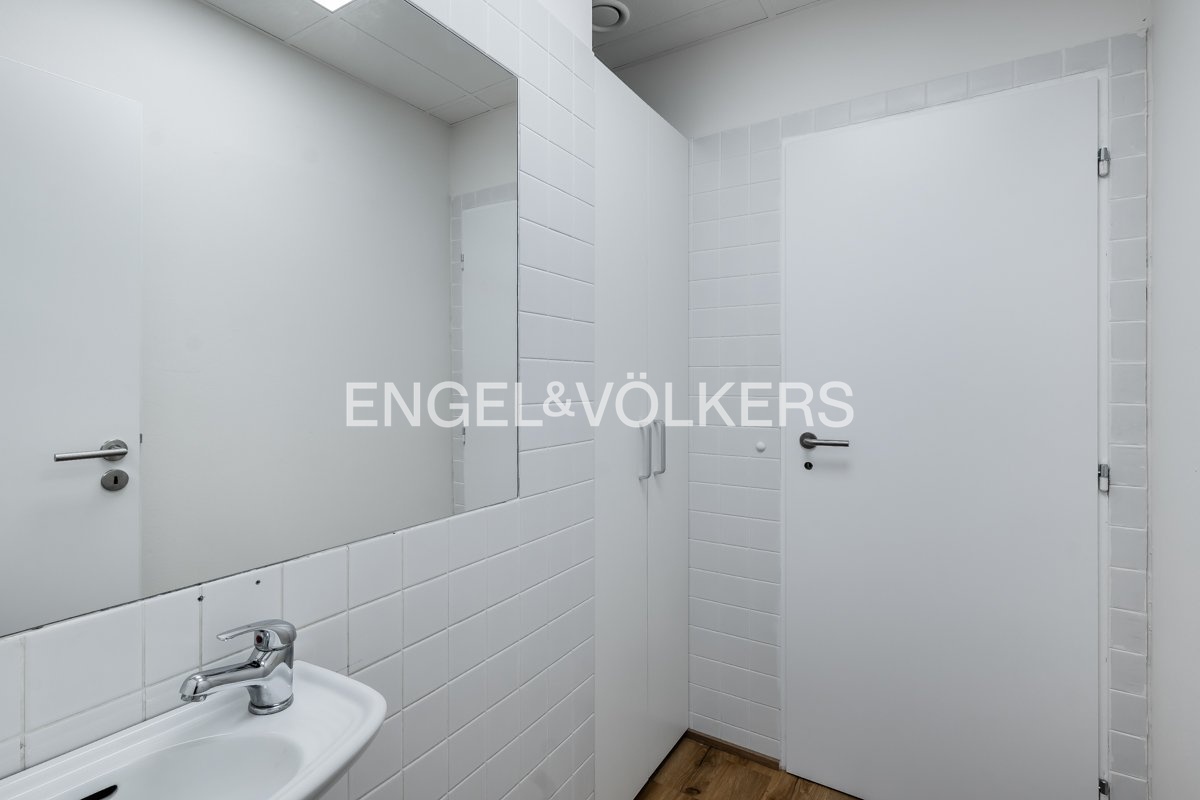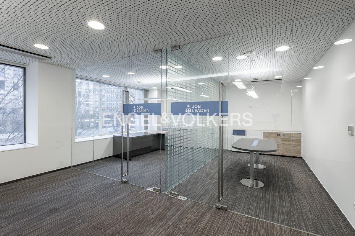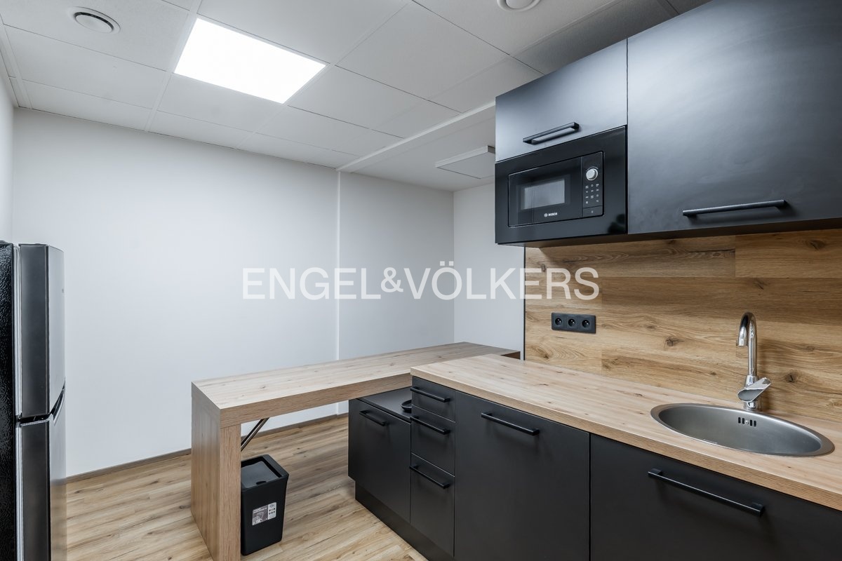 Dispozičně je prostor řešen jako moderní open space s několika pracovními místy, doplněný o dvě samostatné prosklené kanceláře, které poskytují dostatek soukromí pro jednání či individuální práci. Součástí kanceláře je plně vybavená kuchyňka a oddělené toalety. Prostor je částečně zařízený, což umožňuje okamžité využití bez nutnosti vysokých vstupních investic.
