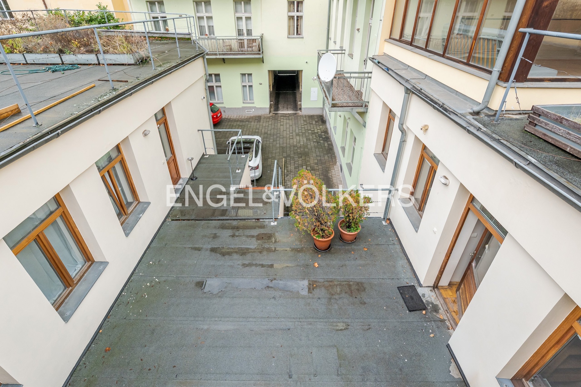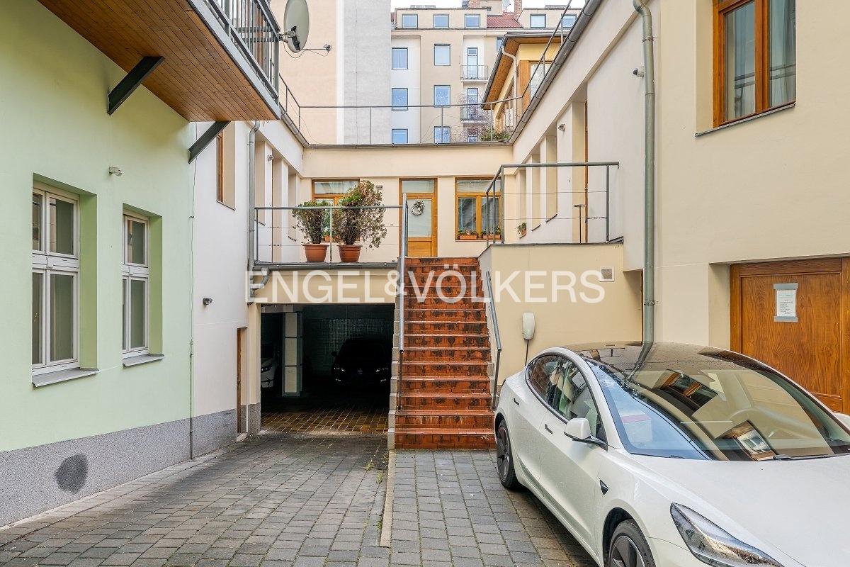 Součástí je také jedno parkovací místo ve dvoře a možnost využití autonabíječky umístěné v průchodu domu. Díky vstupu z průchodu historického činžovního domu působí celý objekt reprezentativně a zároveň nabízí maximální soukromí.