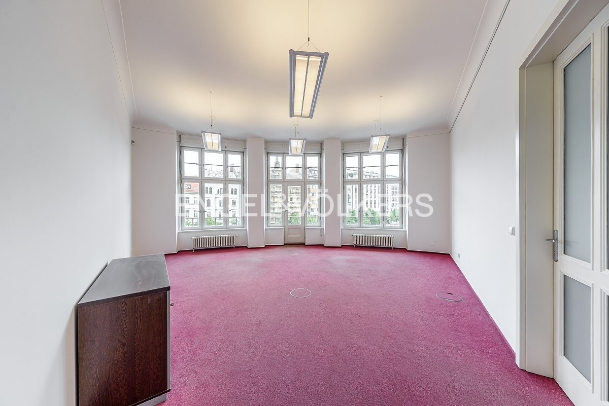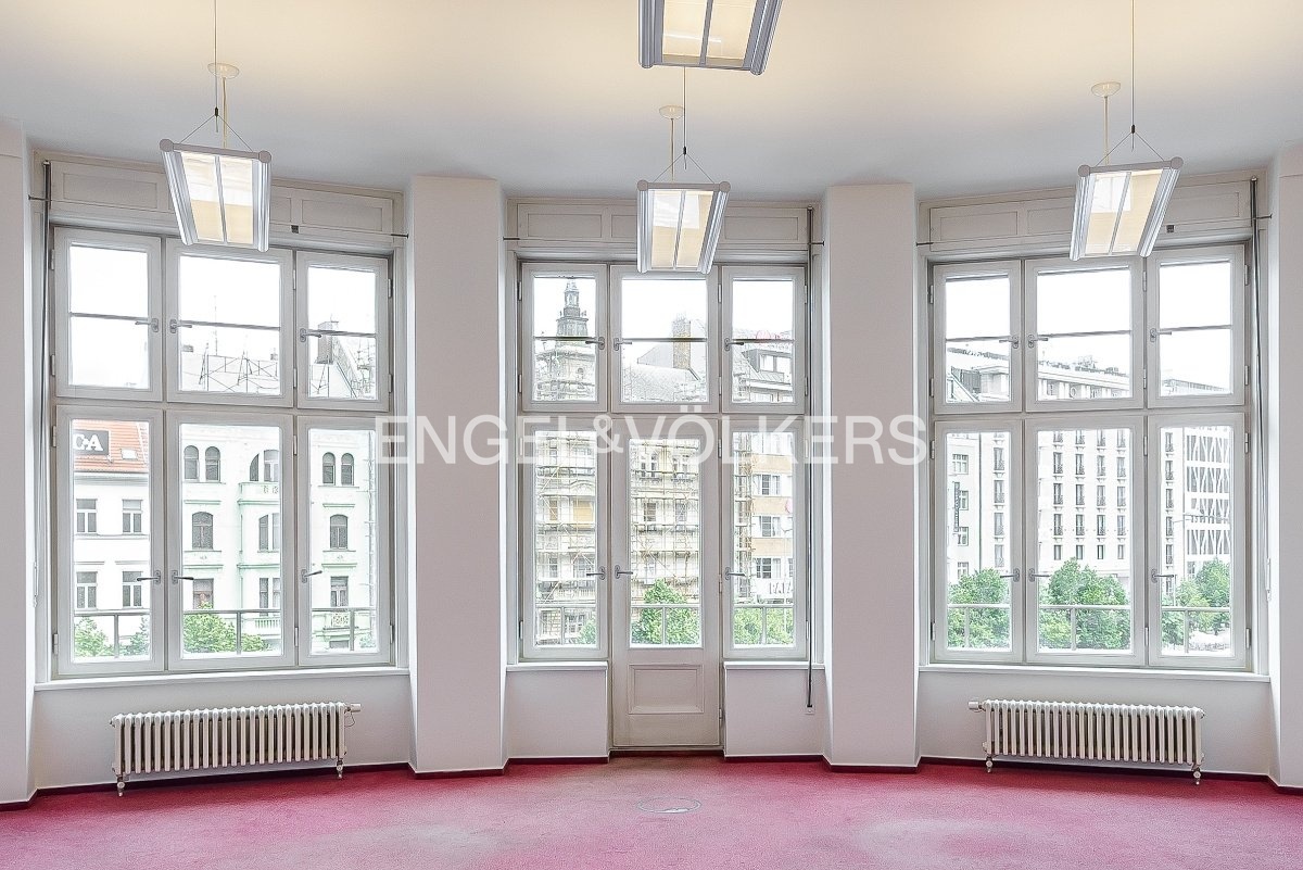 Nabízíme k pronájmu výjimečné kancelářské prostory v lokalitě centra Nového Města s výbornou dostupností MHD a prestižní adresou. Kancelářské patro 560 m² se nachází v činžovním domě na Václavském náměstí. Po vstupu ze Štěpánské ulice se vyvezete výtahem až do 4. NP. Samostatným vstupem se dostanete do dlouhé chodby s 11 místnostmi. Jednou z místností je velmi zajímavě řešená rohová kancelář s atraktivním rohovým balkonem s výhledem na Václavské náměstí. Samozřejmostí je zázemí pro Vaše zaměstnance v podobě nové kuchyňky, oddělených toalet a sprchového koutu.