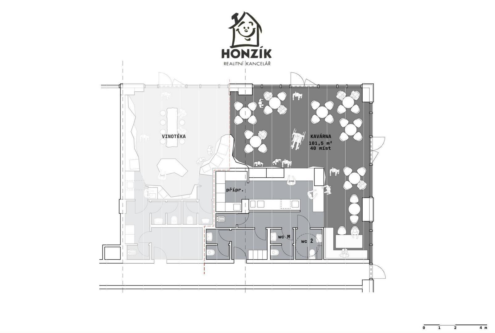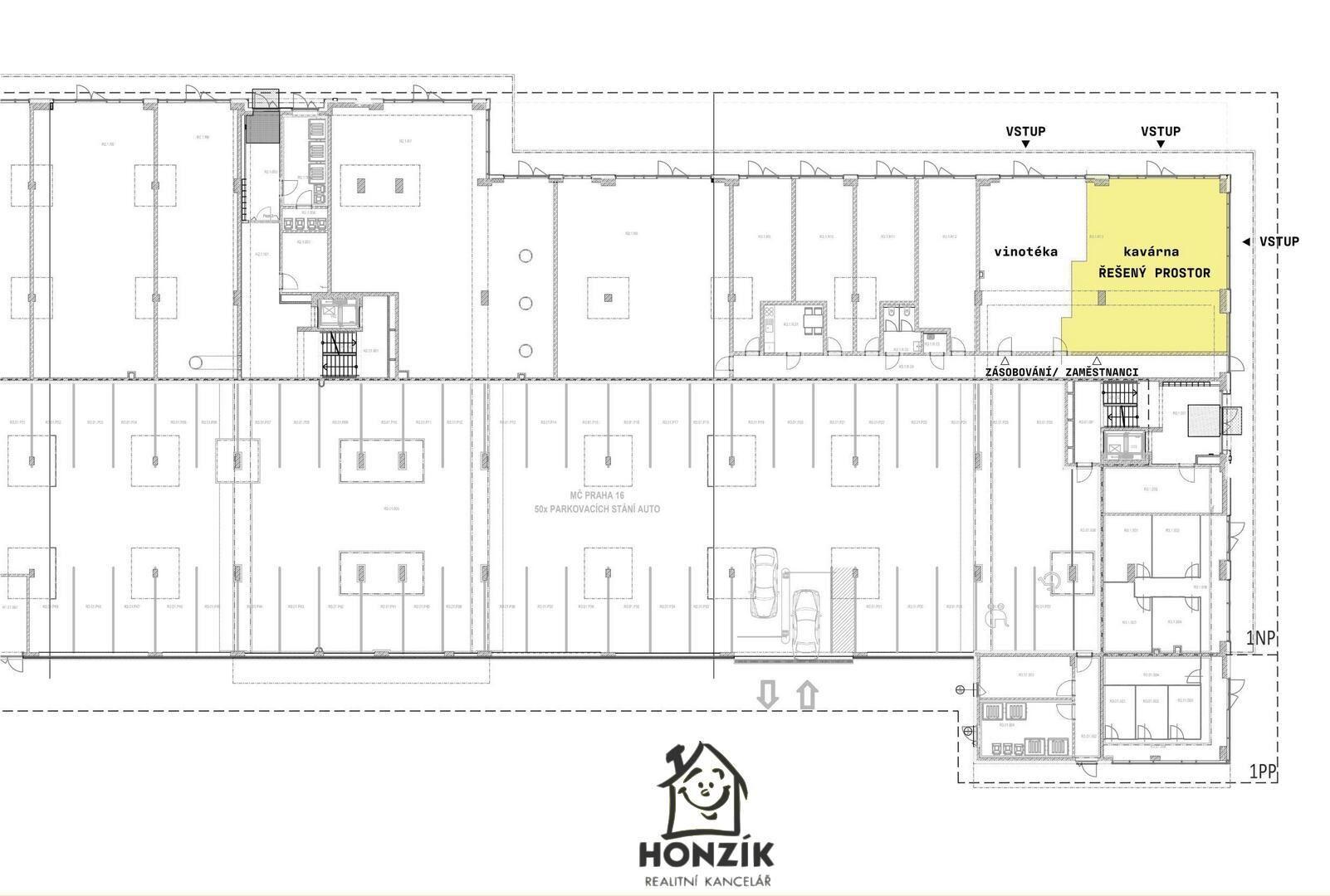 K dlouhodobému pronájmu nabízíme zcela nový prostor určený k provozu kavárny v nově vznikajícím centru Radotína. Kavárna o čisté ploše 101,5 m2 nabízí dle předpokladů cca 40 míst k sezení uvnitř a bude na velmi atraktivním místě v centru budoucí pěší zóny s výhledem na novou radnici. Ze dvou stran je prosklená do pěší zóny a je tedy patrná ze všech dálkových pohledů. Jedná se o výsadní místo s možností rozšíření letního provozu do pěší komunikace. Pronajímatel připraví prostor do stavu hotové dispozice s příčkami, podlahami, zázemím a toaletami. Nájemník dodělá pulty a dodá vlastní vybavení. Developerský projekt Trio Radotín je lokalizován v přirozeném centru městské části. Představuje poměrně rozsáhlý bytový komplex s podzemními garážemi a se spojitým vyšším přízemním (světlá výška 4m) patrem určeným pro nebytové jednotky. Hlavním cílem městské části bylo dotvořit nové městské centrum s obchody, kavárnami a restauracemi propojené s městským úřadem a relaxačním prostorem kolem řeky Berounky. Snadné dopravní propojení městské části s centrem Prahy (15min jízdy vlakem na Smíchovské nádraží) a dostatečná občanská vybavenost činí z Radotína jednu z nejatraktivnějších lokalit hlavního města. Vše by mělo být hotové na jaře 2027, ale v dubnu 2026 se již lze bavit o konkrétní podobě celého prostoru.