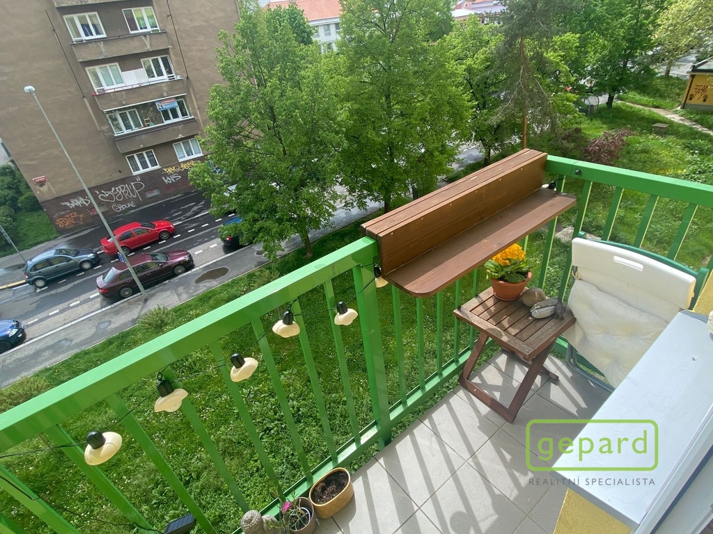 Bytová jednotka je umístěna ve 3.patře cihlového domu s výtahem a okny orientované na jižní stranu, což uvítají všichni ti, kteří mají rádi dostatek světla a sluníčka. Byt je z hlediska dispozic dobře řešený a nabídne vstupní předsíň, ze které je umožněn vstup do ložnice, dále samostatné WC, koupelny se sprchovým koutem a poté do prostorné obývací části s navazujícím kuchyňským koutem a vstupem na lodžii. Byt se pronajímá částečně zařízený, v ložnici zůstává velká šatní skříň s dostatečným úložným prostorem, v kuchyni na míru zhotovena vkusná kuchyňská linka, kde máme umístěnou vestavěnou lednici s mrazákem, el. varnou desku, troubu, myčku, digestoř. V obývacím pokoji a ložnici jsou podlahy pokryty renovovanými parkety, vstupní předsíň, kuchyň, koupelna a toaleta pak světlá dlažba. Vytápění je řešeno centrálním plynovým kotlem.