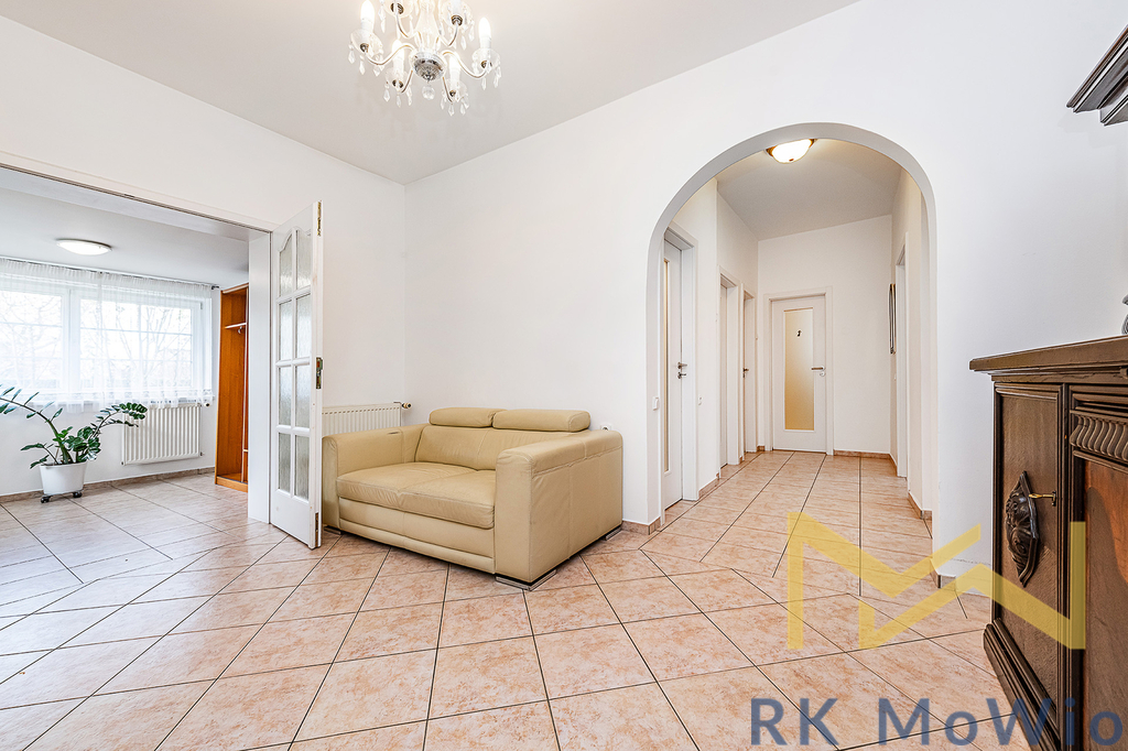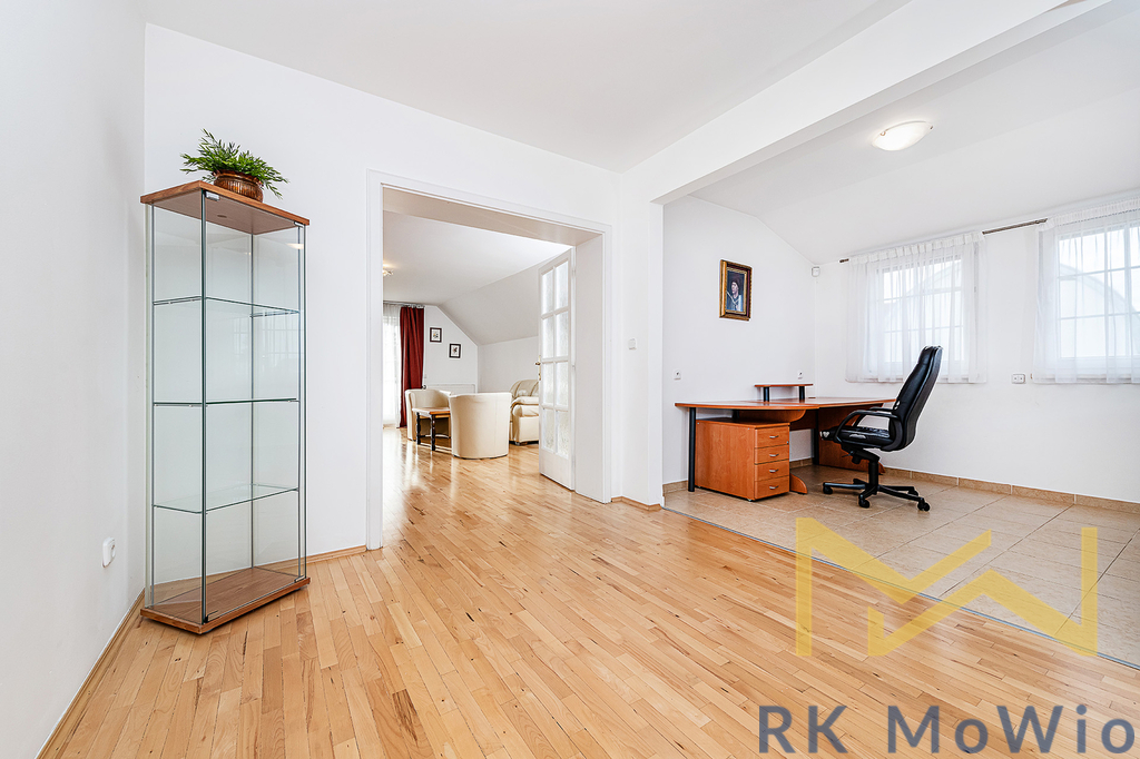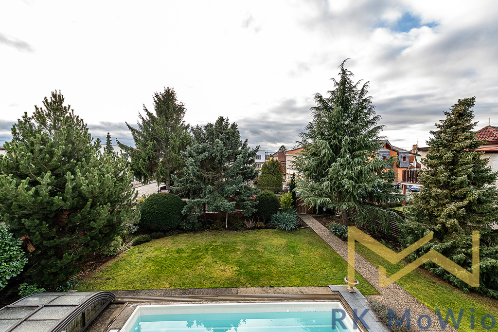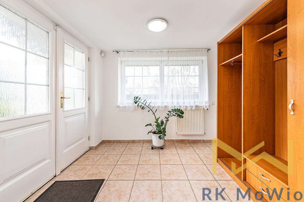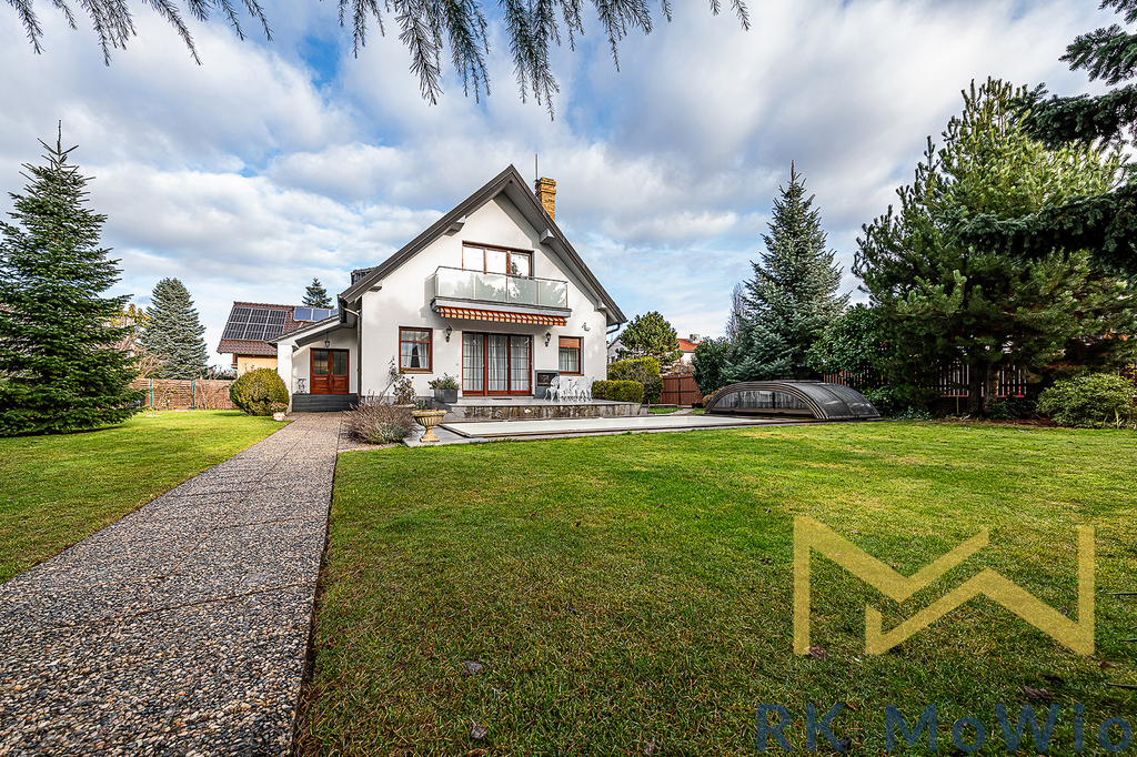 Přízemí domu disponuje předsíní, prostorným obývacím pokojem s krbem a jídelním prostorem se vstupem na terasu a zahradu s bazénem, samostatnou kuchyní, dvěma ložnicemi, koupelnou s vanou a dvěma umyvadly, samostatnou toaletou a technickou místností. V patře domu se nachází druhý obývací pokoj, či herna se vstupem na balkónem, dvě ložnice, pracovní kout, koupelna se sprchou a toaletou. Suterén nabízí spoustu úložných prostor, toaletu, sprchu a garáž. Vybavení bytu: kuchyňská linka (včetně lednice s mrazákem, sklokeramické varné desky, digestoře, myčky a elektrické trouby), vestavěné skříně, centrální vysavač, elektrické žaluzie, podlahové topení, pračka a sušička, příprava pro vysokorychlostní internet, dřevěné podlahy a dlažba.