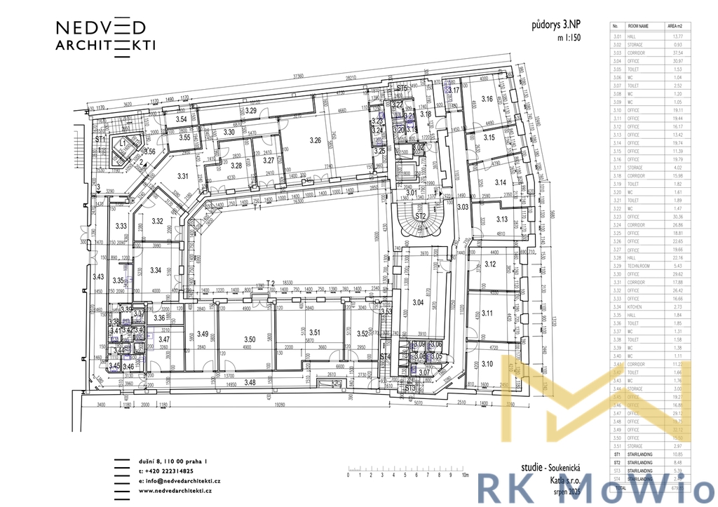 Nabízíme k pronájmu klimatizovanou kancelář o velikosti 140 m², umístěnou v 2. patře (3. nadzemní podlaží) moderní administrativní budovy, v ulici Soukenická na Praze 1 – Nové Město. Budova disponuje reprezentativními společnými prostory, recepcí, ostrahou 24/7, rychlým internetem s optickým připojením, parkingem, výtahy a výbornou dostupností. Společné prostory disponují toaletami a tichými terasami ve vnitrobloku k vybraným jednotkám. Možnost pronajmout až 4 parkovací stání za extra poplatek. Kancelářské prostory je možné upravit dle požadavků nájemce s ohledem na stanovený rozpočet majitele.