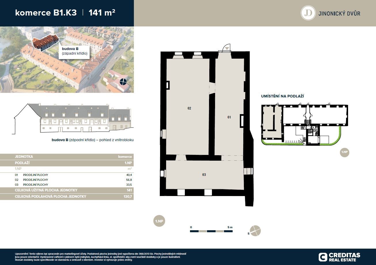 Dovolujeme si vám nabídnout komerční prostor o celkové výměře 141 m² umístěný v 1.NP, který je součástí 2. etapy unikátního projektu Jinonický dvůr.