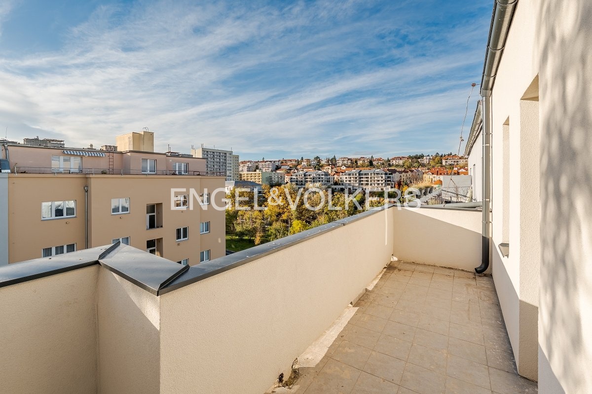 Velkým benefitem bytu je velkorysá terasa s rozlohou 80 m², která poskytuje dostatek místa pro posezení, grilování nebo pěstování rostlin a nabízí příjemný výhled do okolí.