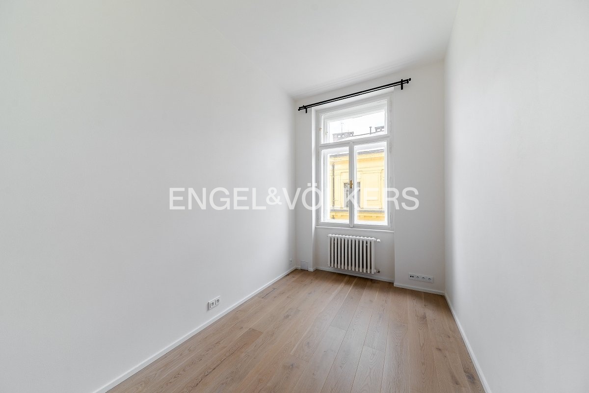 K okamžitému a dlouhodobému pronájmu, minimálně na 2 roky, je připravený kompletně zrekonstruovaný byt 3+kk o výměře 70 m², situovaný ve 5. nadzemním podlaží udržovaného činžovního domu s výtahem v atraktivní lokalitě centra Prahy, jen pár minut chůze od Václavského náměstí. Díky orientaci do tiché slepé ulice nabízí byt klidné bydlení i přes svou výjimečně centrální polohu.