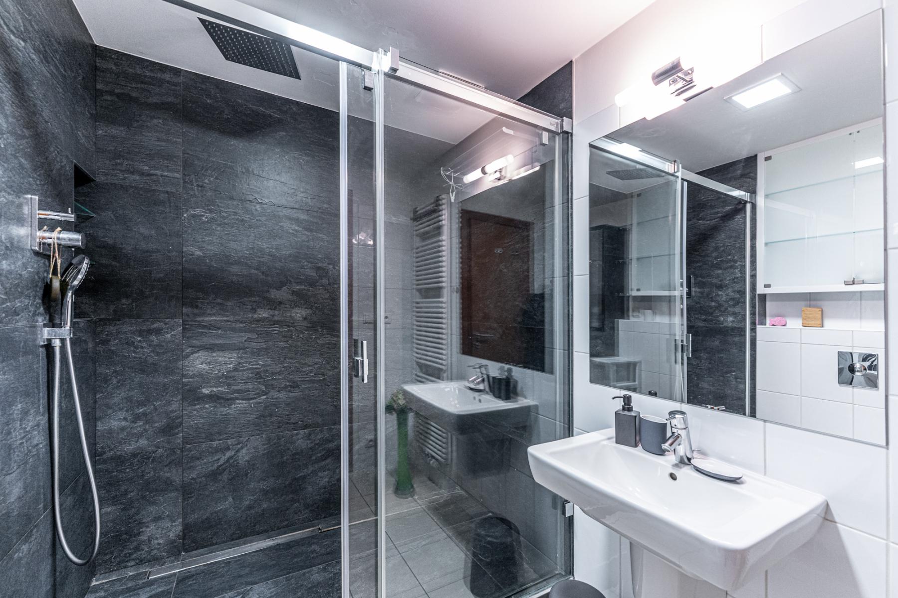 K jednotce, která se prodává jak tzv. stojí a leží tedy včetně vybavenáí moderním nábytkem (skutečnost lehce rozdílná než na fotografiích) a spotřebiči, náleží rovněž sklep o velikosti 4,6 m2 a garážové parkovací stání v suterénu budovy. Obyvatelům domu je k dispozici také kolárna.