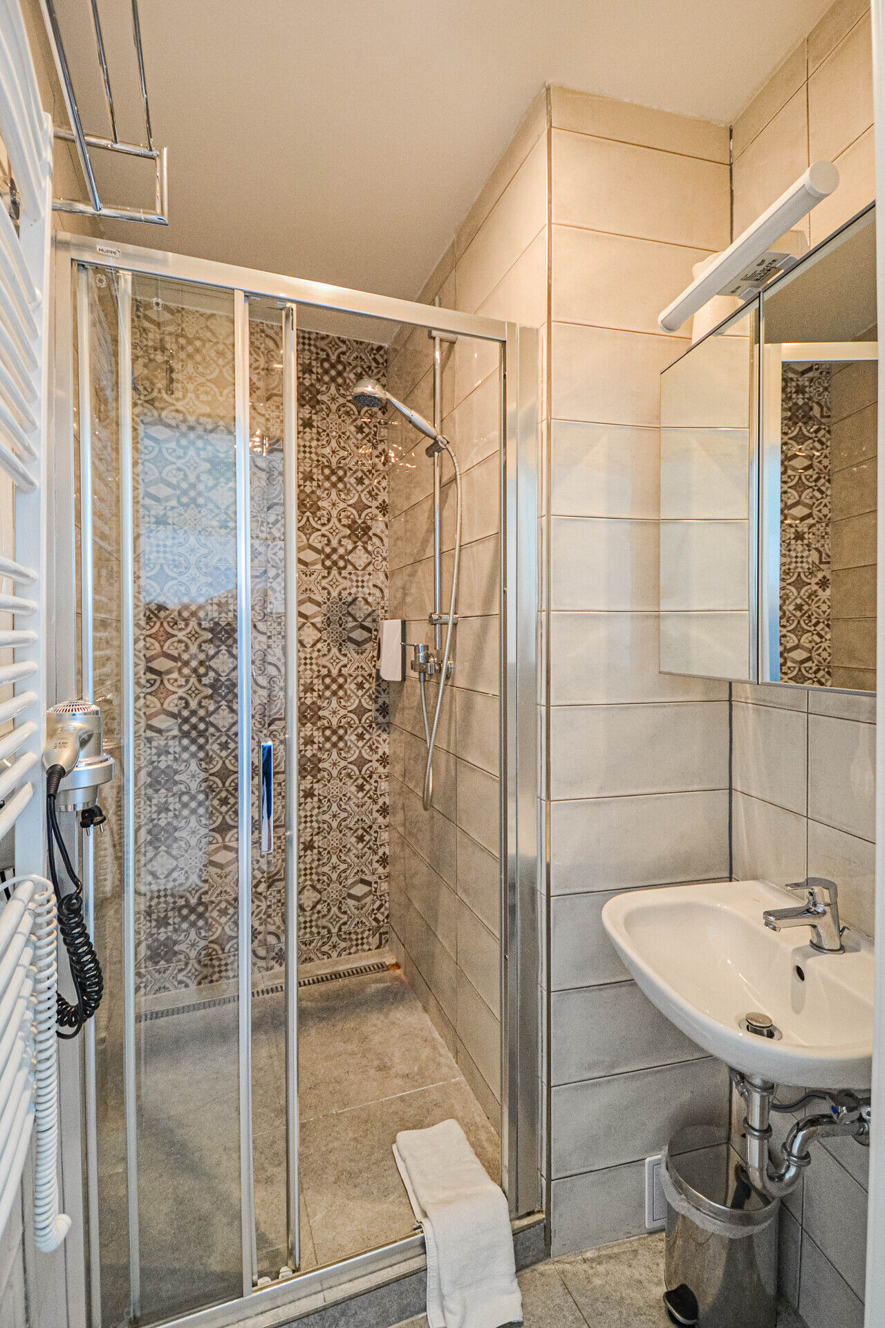 V esteticky navržené koupelně se nachází sprchový kout, umyvadlo, zrcadlová skříňka, otopný žebřík, vysoušeč vlasů. V technické místnosti je instalována pračka. Zimní zahrada nabízí příjemné posezení za každého počasí a v jakékoli roční době.