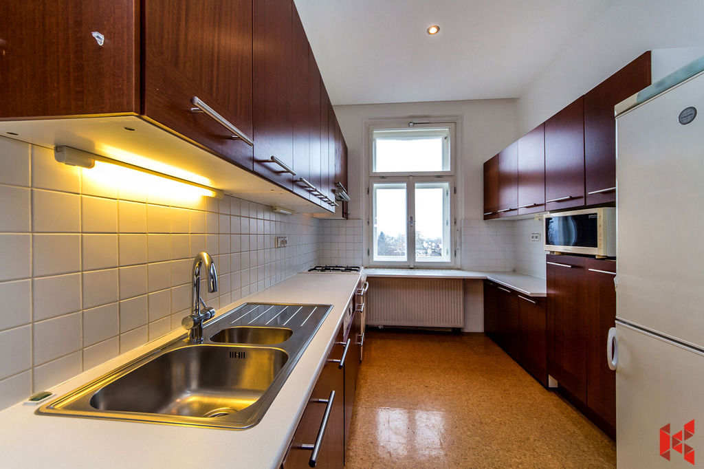 Pokoje jsou orientovány na severozápad s nádherným výhledem do přírody na Královskou oboru (Stromovku). Perfektní dispozice - dva pokoje jsou neprůchozí. Je pronajímán částečně zařízený.