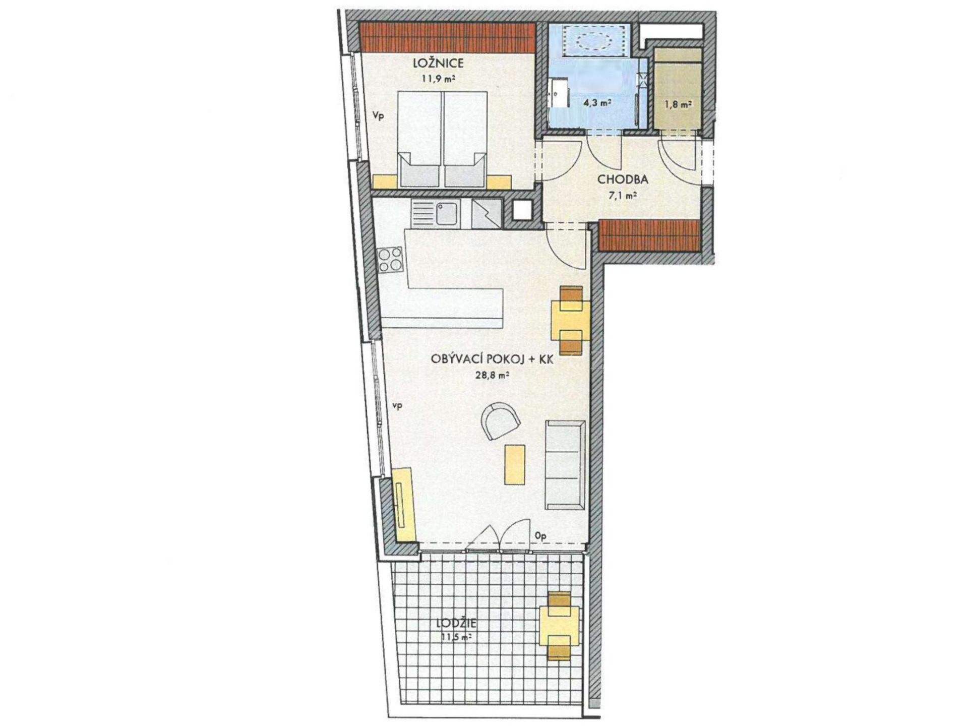 Byt se nachází v předposledním patře. lodžie je tedy shora krytá a nabízí možnost příjemného odpočinku i za deštivých dnů.