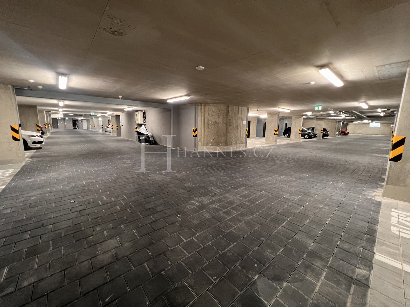 K bytu náleží větší parkovací garážové místo 14m² (5x2,8) a sklepní kóje 2,4m², umístěné v 1.NP domu.