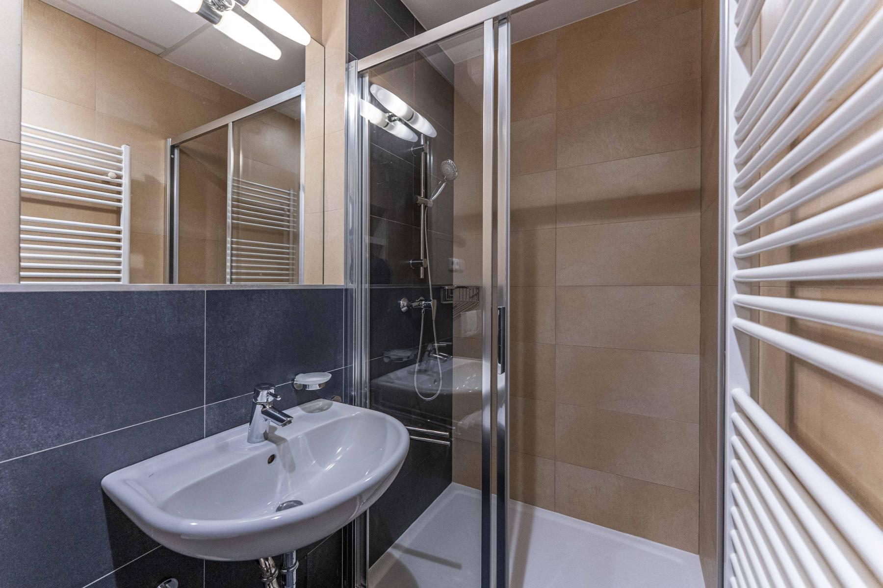 Byt ve zvýšeném přízemí je orientovaný na západ do tichého vnitrobloku, díky čemuž si můžete užít ticho s otevřenými okny a odpolední slunce.