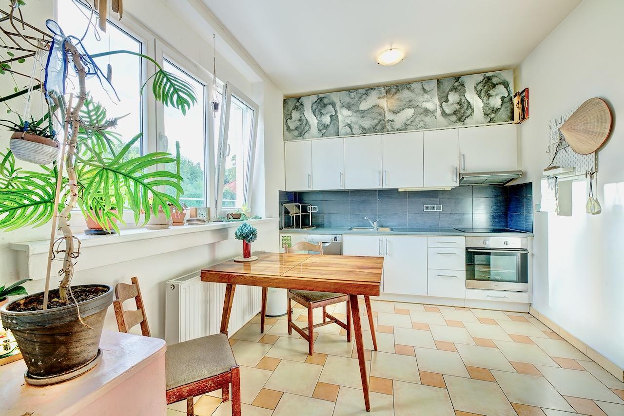 K koupi nabízím krásný, světlý byt o dispozici 2+1 s obrovskou terasou, který se nachází v posledním patře dobře udržovaného funkcionalistického domu bez výtahu z roku 1942. Dům i byt prošly v roce 2008 kompletní rekonstrukcí.