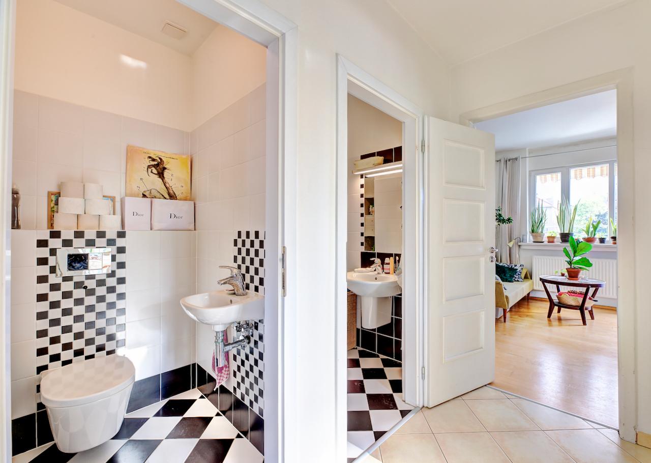 Podle prohlášení vlastníka jsou velikosti následující: byt 61,53 m2 + terasa 45,43 m2 a sklep 4,93 m2 přičemž podle našeho měření je byt přibližně o 1 m2 větší. Současnou dispozici lze jednoduše upravit na 3+kk.