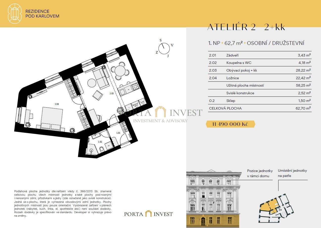 | Dispozice/podlahová plocha: | 2+kk/61 m² |