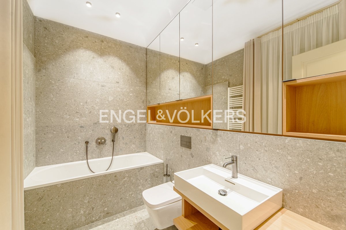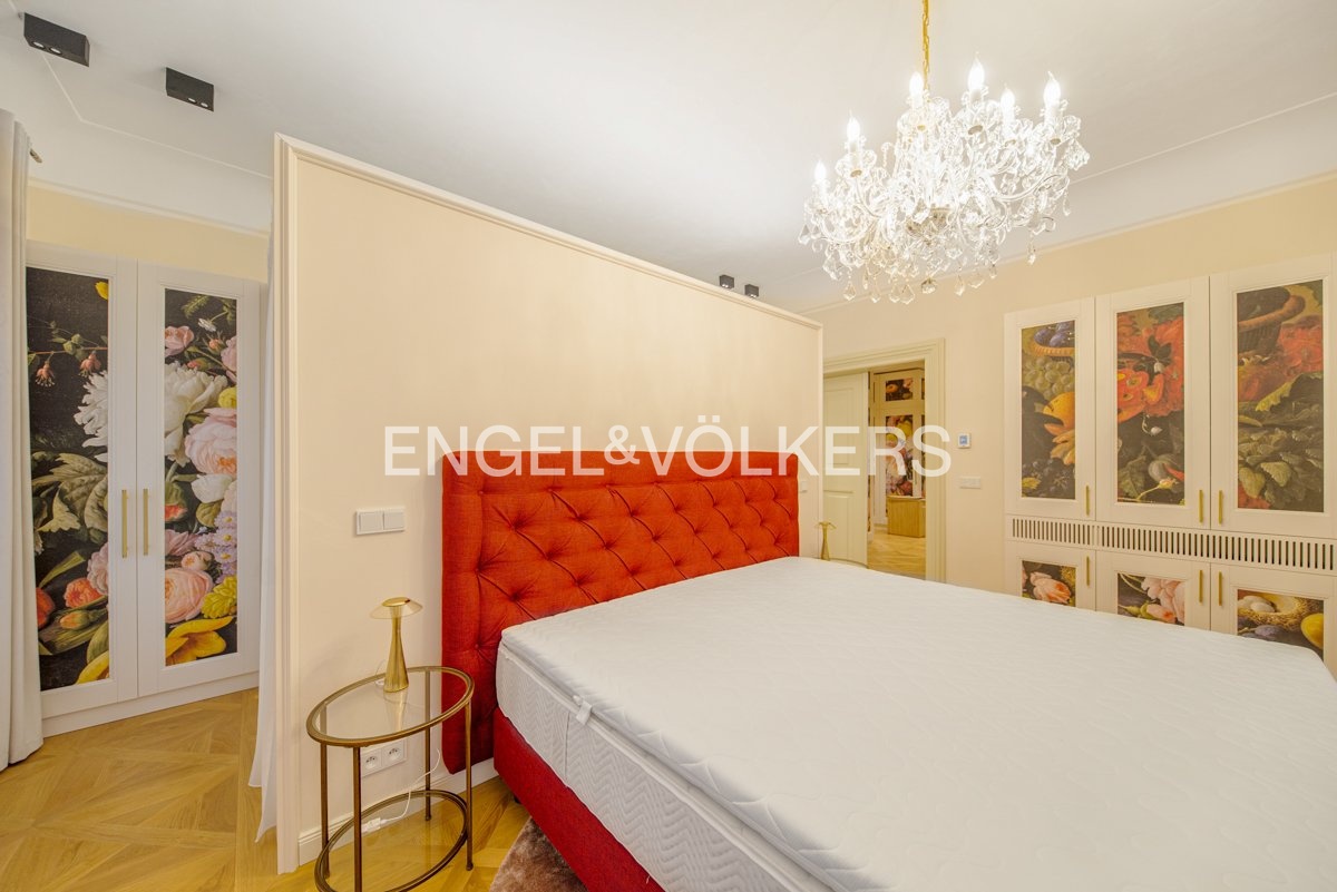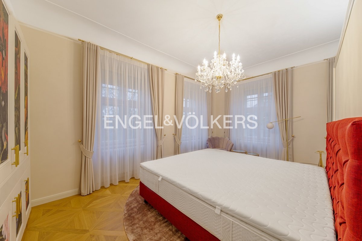 Luxusní plně zařízený a klimatizovaný apartmán se nachází ve třetím nadzemním podlaží této exkluzivní rezidence. Praktická dispozice bytu, kdy se ze vstupní předsíně vchází do ložnic a kuchyně spojené s jídelnou. Nadstandardní obývací pokoj je samostatný. Kuchyně plně vybavená spotřebiči MIELE. Z obývacího pokoje a ložnice je fantastický výhled na Vltavu a Karlův most. V apartmánu jsou dřevěné podlahy, klimatizace, elektricky ovládané rolety.