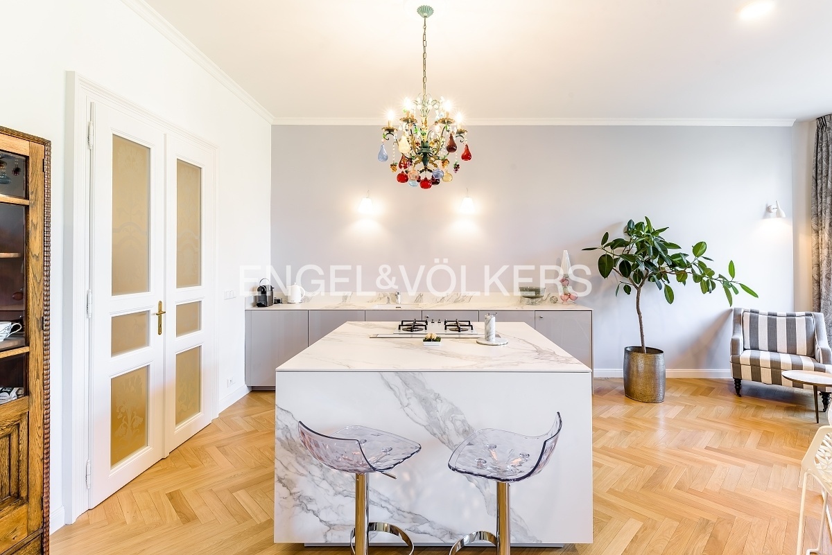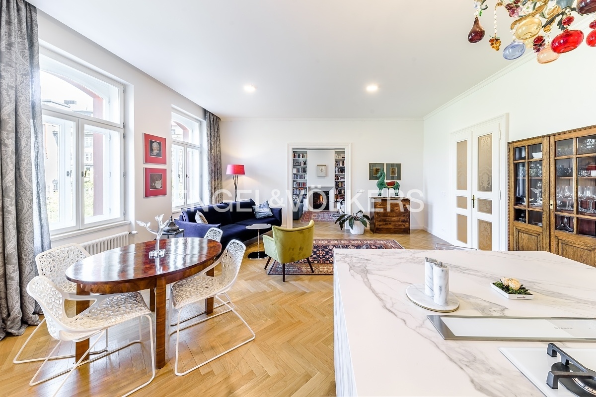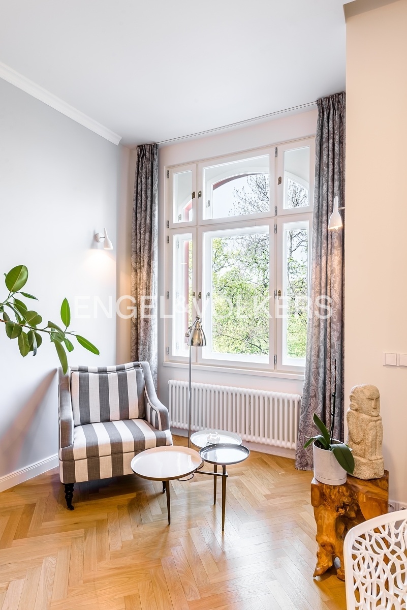 V jedné z nejoblíbenějších rezidenčních lokalit v Praze je nyní nabízen nákladně zrekonstruovaný velkoryse řešený byt s dispozici 3+kk plně vybavený luxusním nábytkem. Lokace historického činžovního domu umožňuje uklidňující výhledy do sluncem zalitých Riegerových sadů.