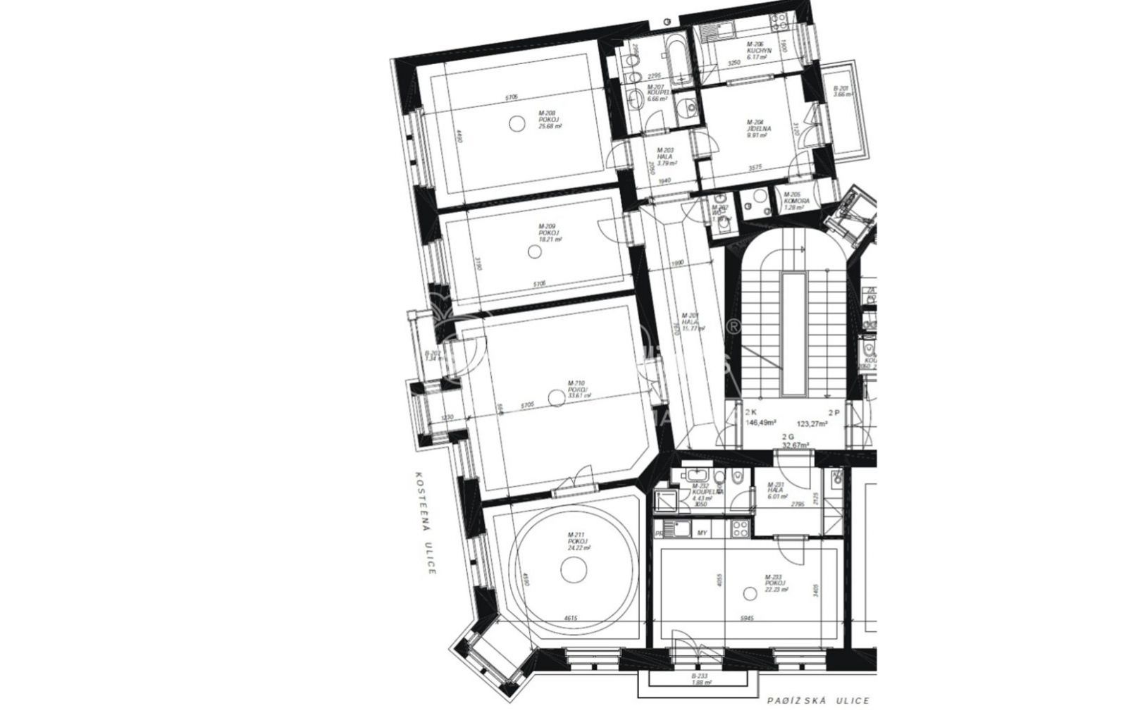 Nabízíme k pronájmu výjimečný, nezařízený byt o dispozici 4+1 a celkové ploše 151 m, se dvěma balkony, situovaný v reprezentativním historickém činžovním domě s recepcí, přímo v prestižní Pařížské ulici. Dům se nachází na jedné z nejluxusnějších adres v Praze, jen pár kroků od Staroměstského náměstí.