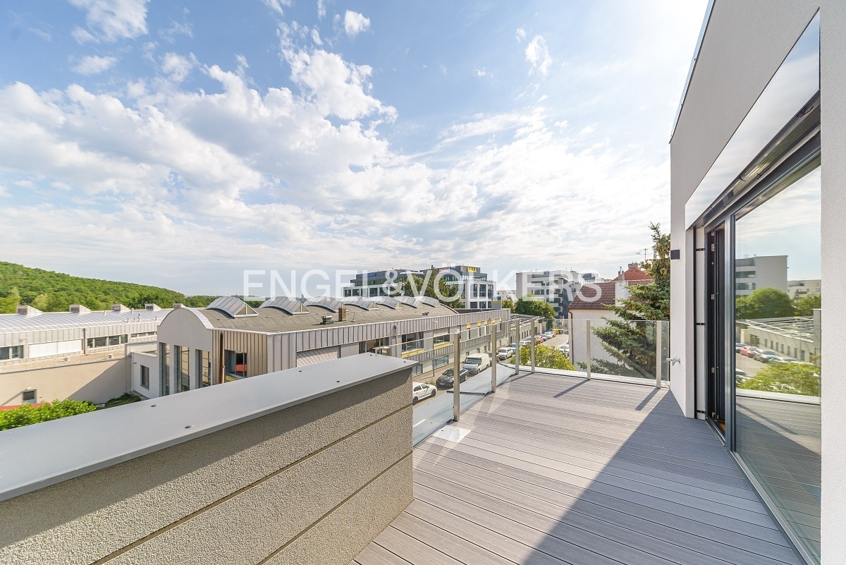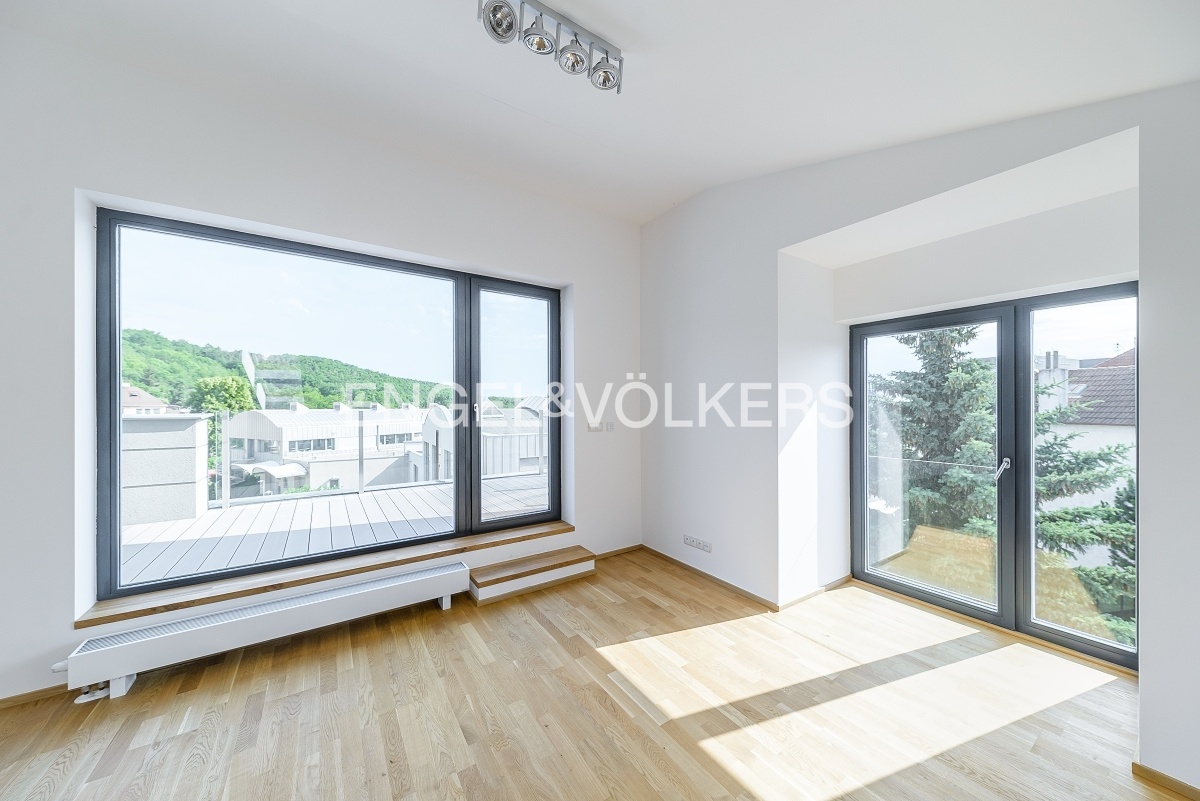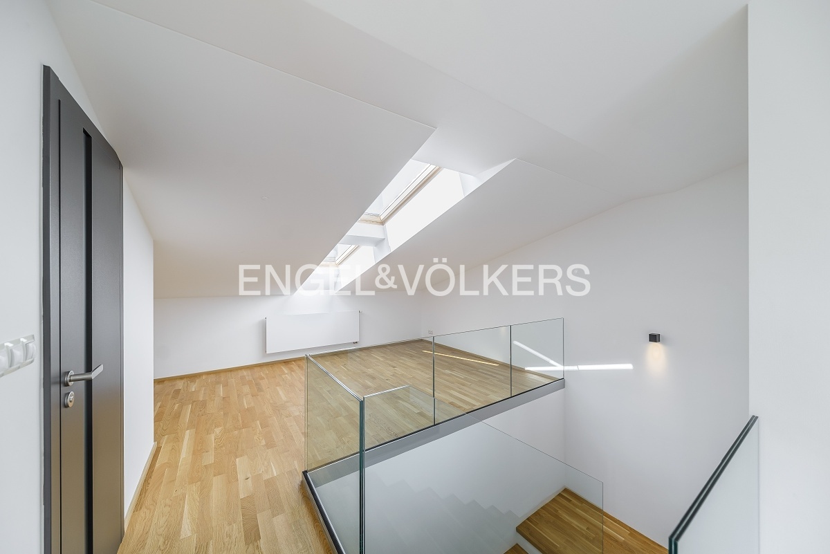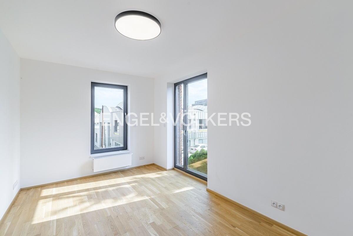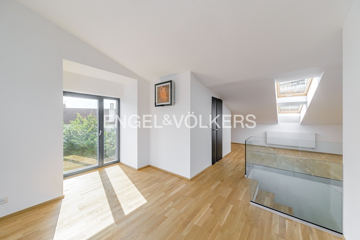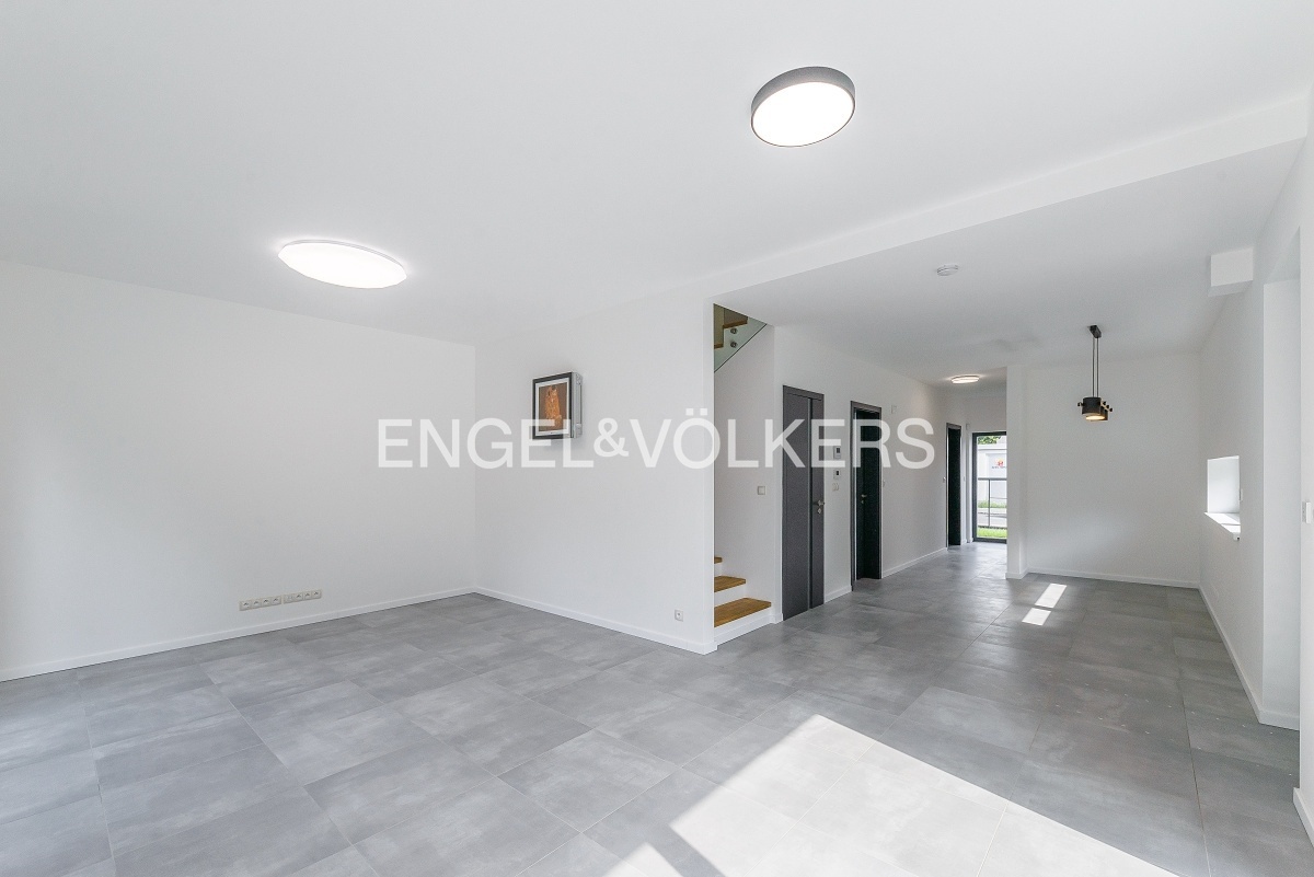 K okamžitému pronájmu je připravený k pronájmu luxusní, krajní řadový dům se zahradou. Dům se skládá ze třech podlaží a díky francouzským oknům je velmi světlý a vzdušný.