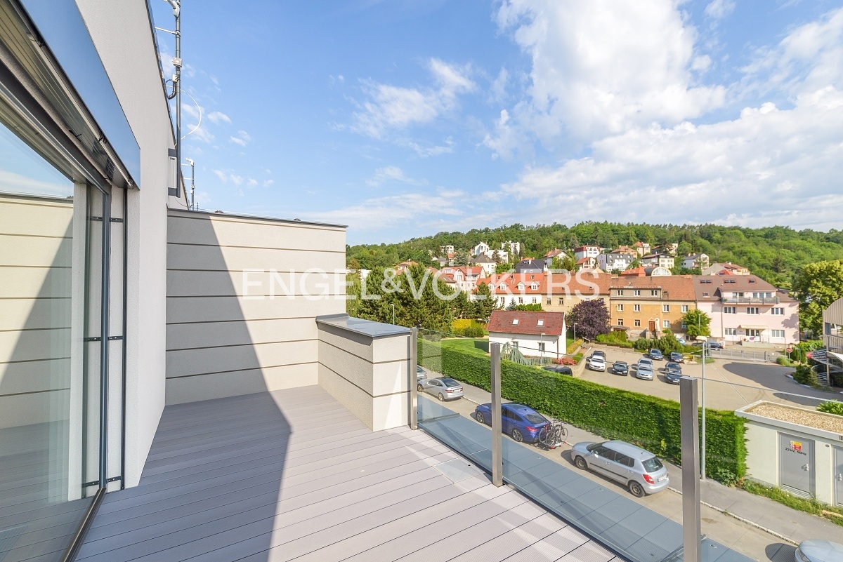 Ve třetím nadzemním podlaží je přes celé patro galerie se třetí koupelnou a se vstupem na terasu s krásnými výhledy do okolí.