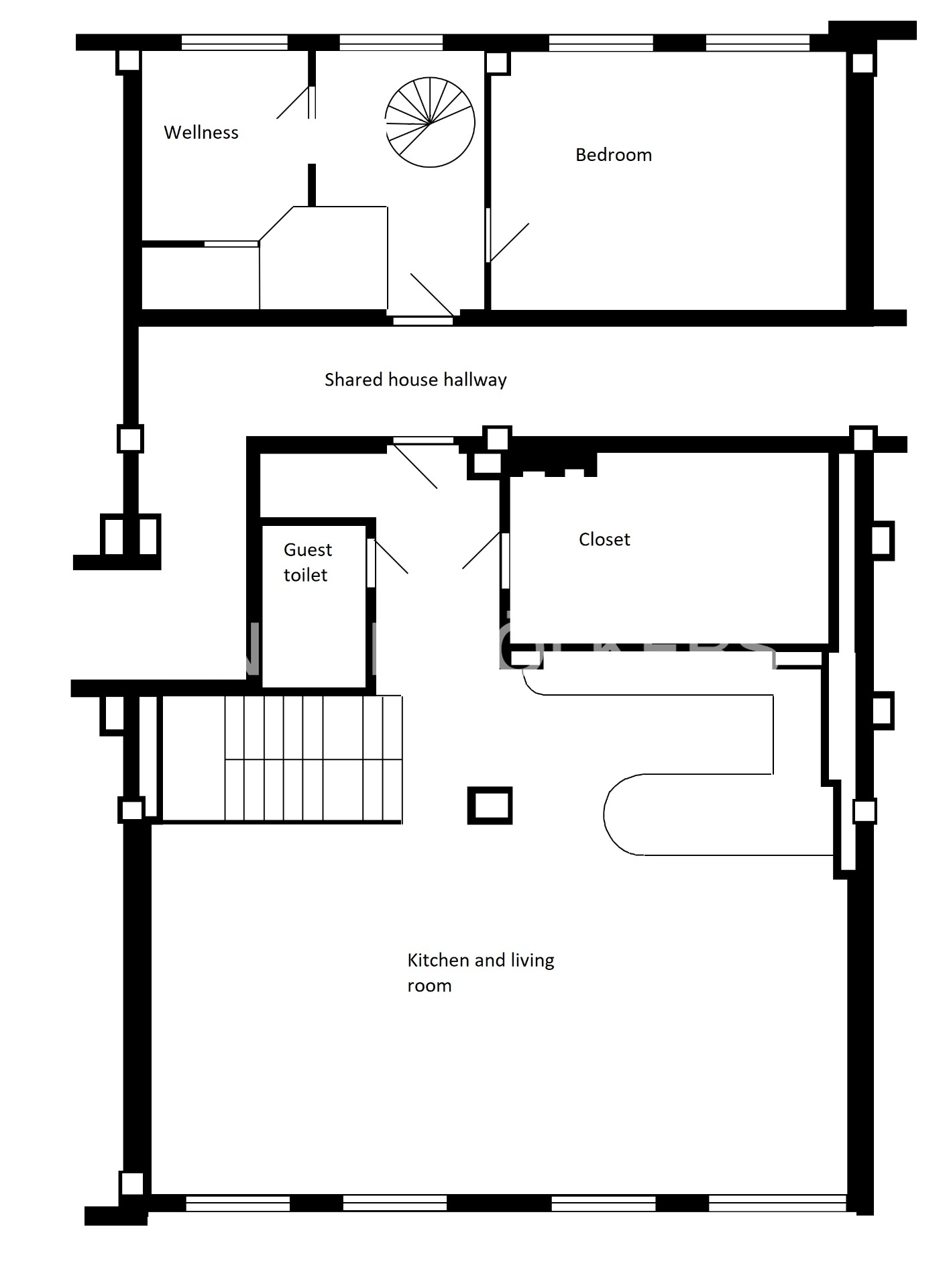 Loft se pronajímá nezařízený, pouze včetně vestavěného nábytku (TV součást pronájmu, velký barevný obraz nikoliv).