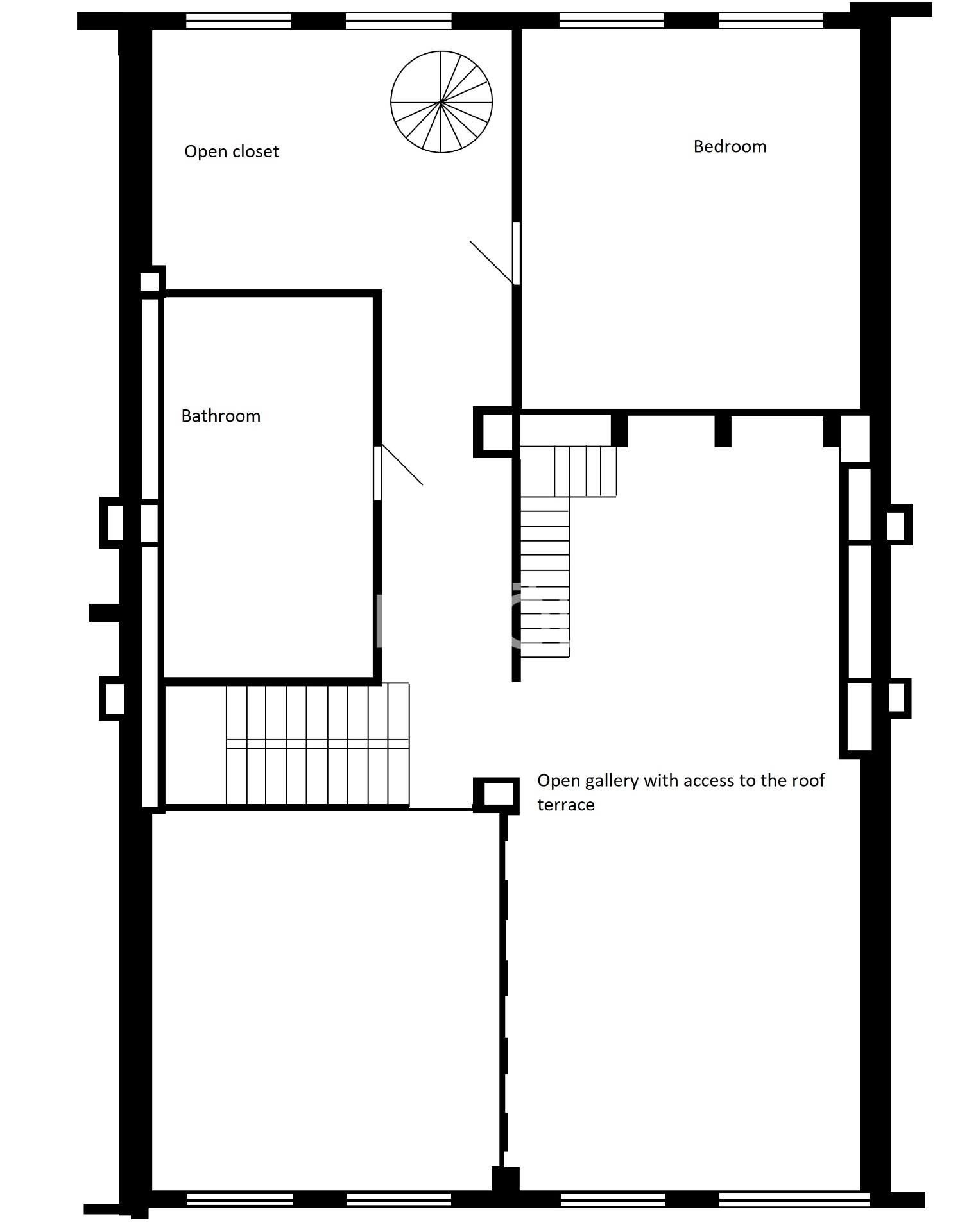 Z galerie je po točitých schodech přístupná střešní terasa.