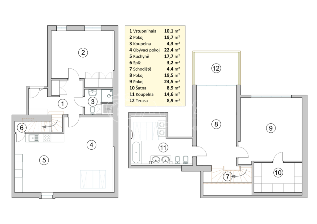 Byt je koncipován jako mezonet rozkládající se v 5. a 6. patře: