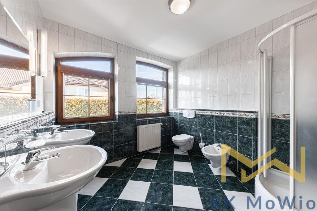 Půdorys domu je rozdělen do dvou hlavních podlaží. Přízemí disponuje vstupní předsíní, reprezentativní halou s točitým schodištěm, prostorným obývacím pokojem s jídelní částí a francouzskými okny se vstupem na terasu a zahradu, samostatnou kuchyní, dvěma pokoji vhodnými jako hostinské ložnice či pracovna, samostatnou toaletou a saunou s koupelnou (sprchový kout, umyvadlo). První patro nabízí dvě haly, šest multifunkčních ložnic, dvě koupelny (vana nebo sprchový kout, umyvadlo, toaleta), prádelnu a dva balkóny. Dispozice domu je navržena s důrazem na oddělení společenské a klidové části a poskytuje dostatek prostoru pro rodinné bydlení i reprezentativní účely. Vybavení domu zahrnuje kuchyňskou linku se spotřebiči (lednice s mrazákem, sklokeramická varná deska, digestoř, myčka, zabudovaná elektrická a mikrovlnná trouba), vestavěné skříně, vyhřívané podlahy, pračku a sušičku, přípravu pro vysokorychlostní internet, alarm, dřevěné podlahy a dlažbu. Veškeré interiéry i exteriéry nemovitosti jsou provedeny ve vysokém standardu.