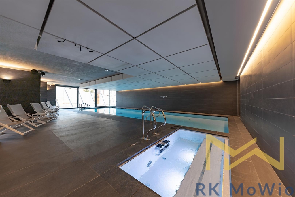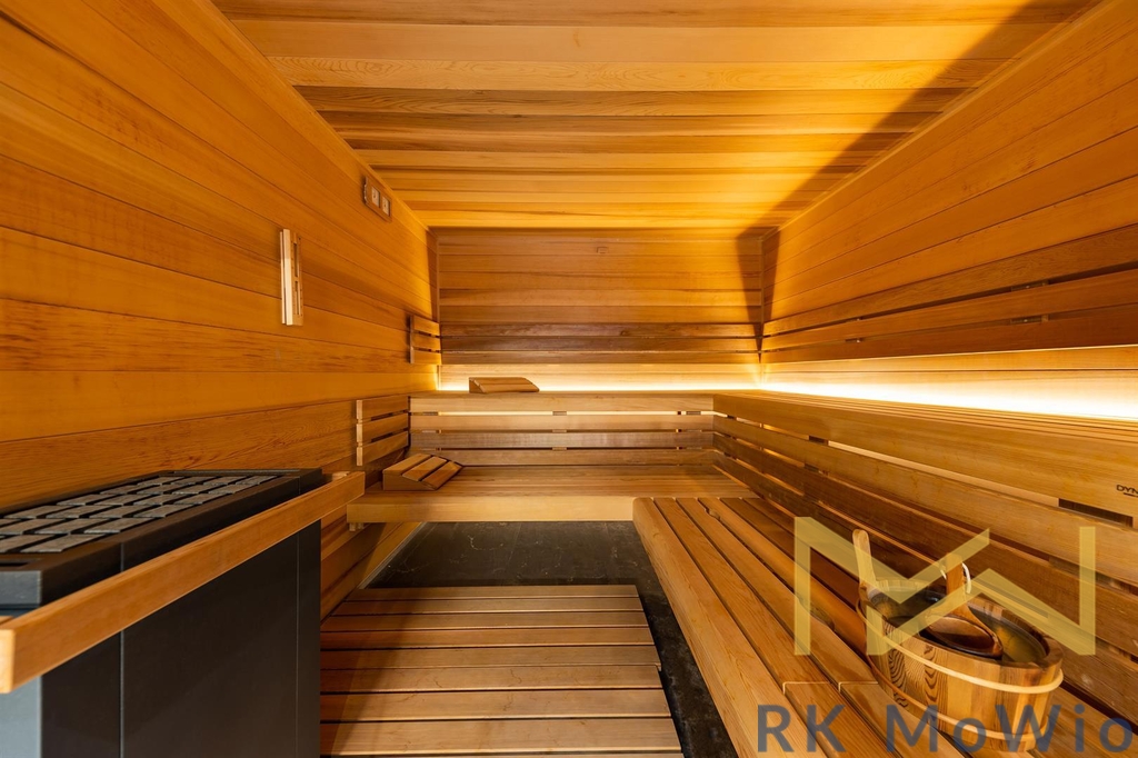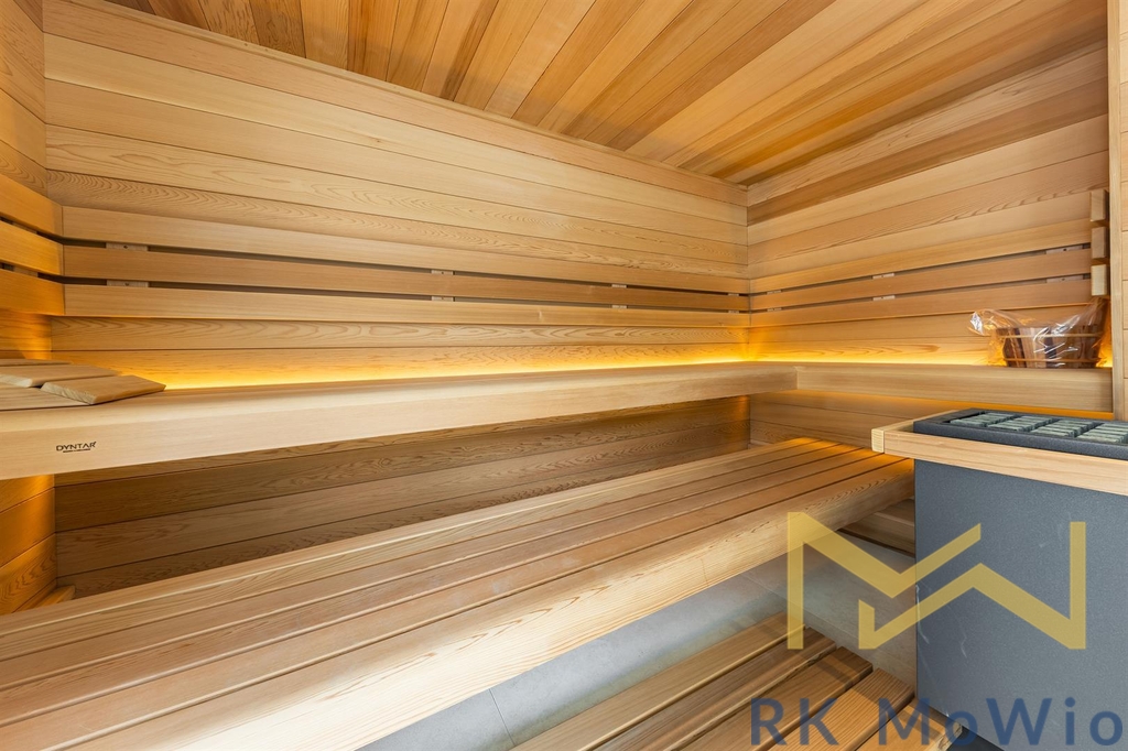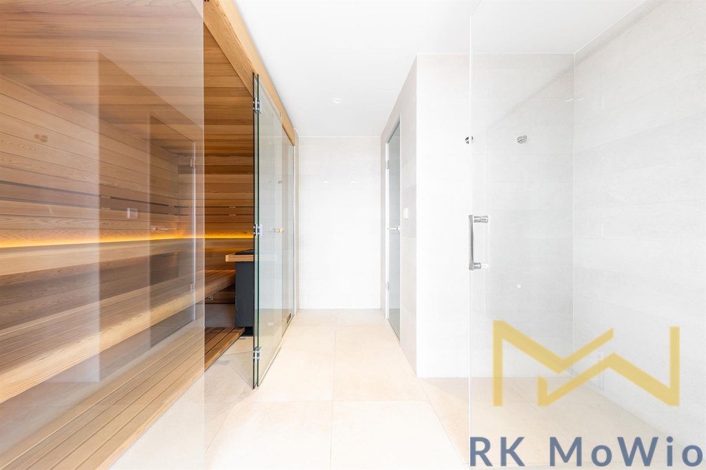 Spodní patro disponuje prostorným obývacím pokojem s krbem a kuchyňským a jídelním prostorem se vstupem na terasu, hlavní ložnicí s koupelnou, šatnou a vstupem na druhou terasu, dalšími 2 ložnicemi, také se vstupem na terasu, koupelnou, samostatnou toaletou, komorou. Do prvního patra vede stylové točité schodiště, kde naleznete galerii se vstupem na terasu a střešní zahradu s panoramatickým výhledem, koupelnu a wellness se saunou. Další vybavení bytu kuchyňská linka včetně lednice s mrazákem, varné desky, elektrické trouby, myčky, digestoře a mikrovlnné trouby; možnost instalace pračky a sušičky, přípravu pro vysokorychlostní internet, dřevěné podlahy a dlažba. Veřejné prostory jsou osazeny CCTV kamerami, vstup a vjezd je řízen čipovými kartami, byty jsou vybaveny bezpečnostními dveřmi a skly i alarmem.