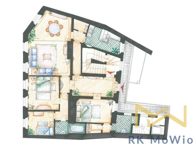 K pronájmu nabízíme částečně zařízený prostorný byt č. V5-L, o dispozici 4+1, s podlahovou plochou 170 m2 a terasou na pavlači o rozloze 17 m2, situovaný ve 2. patře (3. nadzemní podlaží) kompletně zrekonstruovaného historického domu bez výtahu v ulici Vlašská na Praze 1 - Malá Strana.