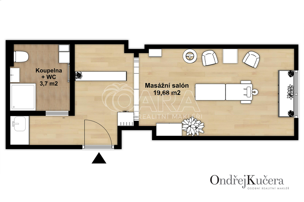 Jednotka je ideální pro masáže, terapeutické služby, kosmetiku, konzultační či klidný kancelářský provoz.