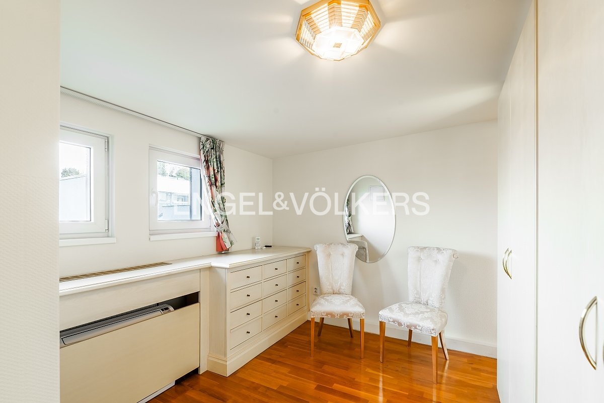 První patro se skládá ze vstupní chodby s vestavěnými skříněmi, ze které se vchází do prostorného obývacího pokoje s jídelní částí a plně vybavené kuchyně se spotřebiči vysoké kvality, oddělené příčkou. Poslední místností v přízemí bytu je koupelna s vanou. Z obývacího pokoje se vstupuje na 34 m² terasu do vnitrobloku.