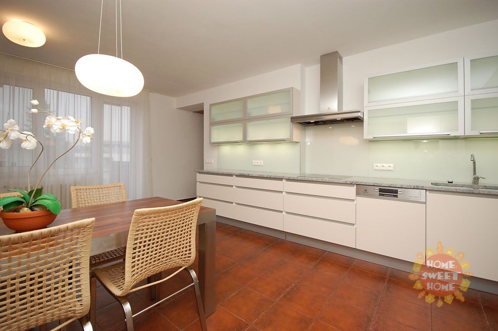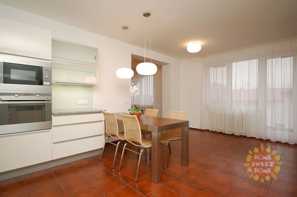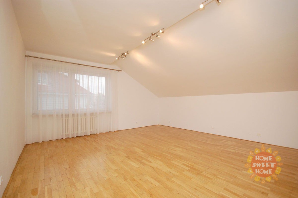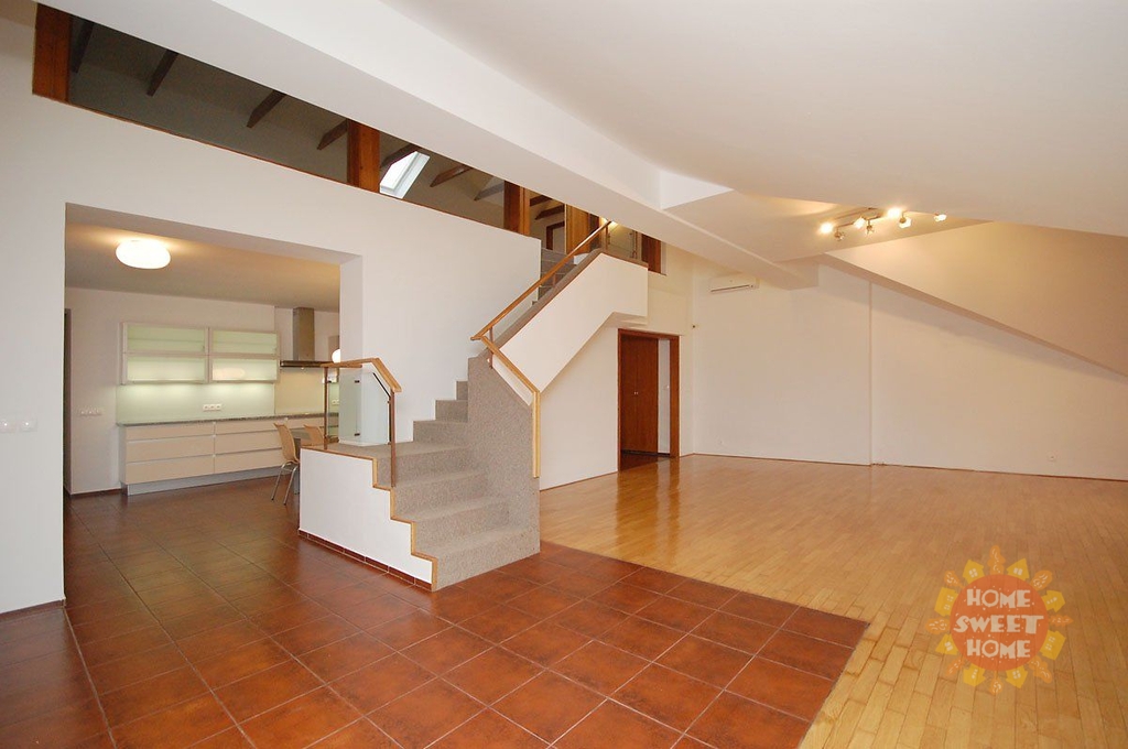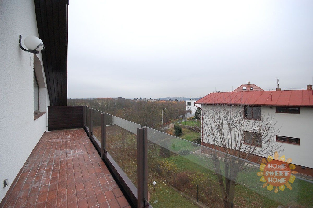 Hezký nezařízený mezonetový byt 6+1 k pronájmu v horních dvou patrech vily v klidné a zelené oblasti Bráníku - Jiráskova čtvrť. Celkem 293,24 m2 podlahové plochy je kryto parketami, plovoucím podlahami a popřípadě dlažbou. Rozměrná moderní kuchyně je vybavena všemi spotřebiči, dále se ve spodním patře nachází obývací pokoj, tři ložnice, vstup na balkón, šatna a koupelna s obrovskou vanou, v horním nalezneme dvě velké galerie. V domě je ústřední vytápění, telefonní linka s možností internetu ADSL. Po dohodě je možno dovybavit pračkou, instalace sušičky je též možná. Možnost využití parkování jednoho vozu v garáži, další dva mohou stát ve dvoře, zahrada je nájemníkům k dispozici. Tři minuty jízdy od domu je vjezd na Jižní Spojku, tři minuty jízdy opačným směrem je nákupní centrum Novodvorská. Zastávka autobusu MHD je o dvě ulice dále.