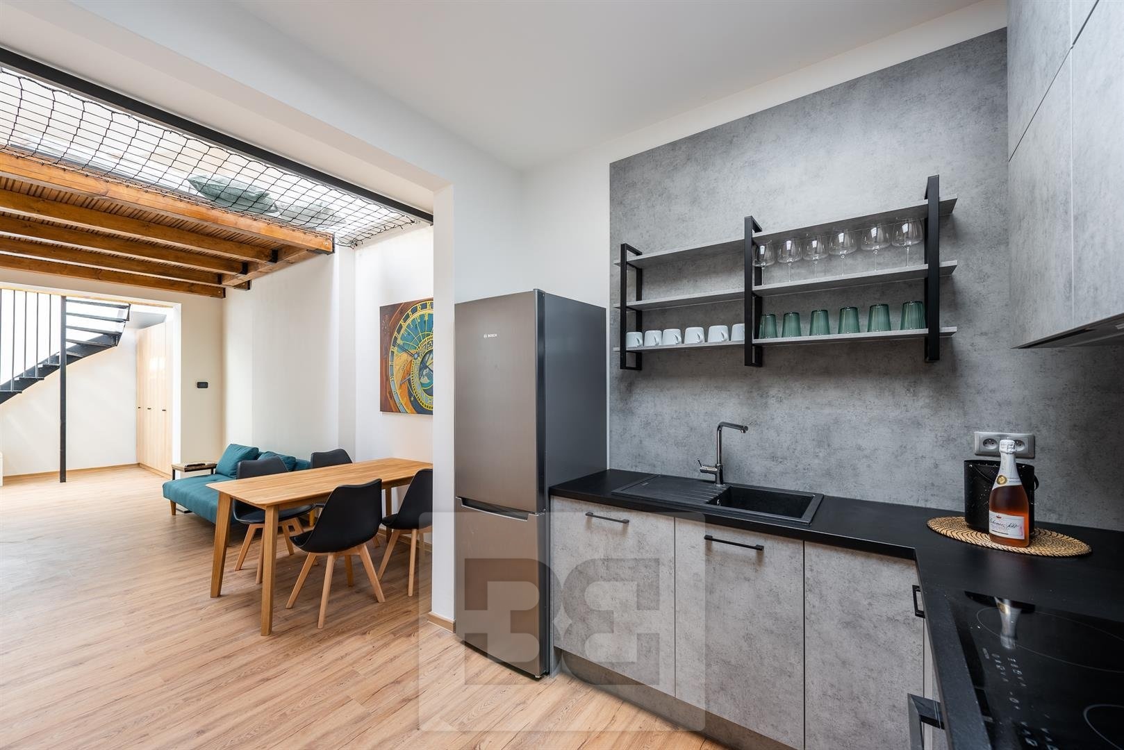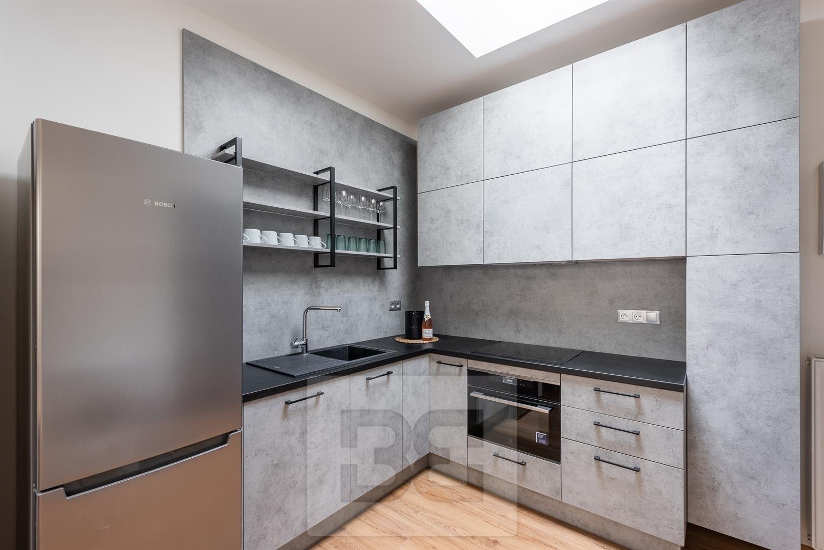 V bytě je plné vybavená kuchyně na míru s všemi vestavěnými spotřebiči. Indukční varna deska, trouba kombinovaná s mikrovlnnou funkci, myčka, lednička s mrazákem, pračka, kompletní vybavení na vaření a nádobí. V ceně služeb, je vysokorychlostní internet, Netflix, Inteligentní TV Samsung 65. Topení je možné ovládat na dálku, klimatizace. Byt se nachází v podkroví rekonstruovaného domu s výtahem. Elektricky ovládaná střešní okna, dálkové ovládaný vchodu do domu. Jedinečná nabídka pronájmu bytu přímo na Staroměstském náměstí v Praze. Byt se nabízí plné zařízen a připraven k nastěhování včetně povlečení a ručníků.