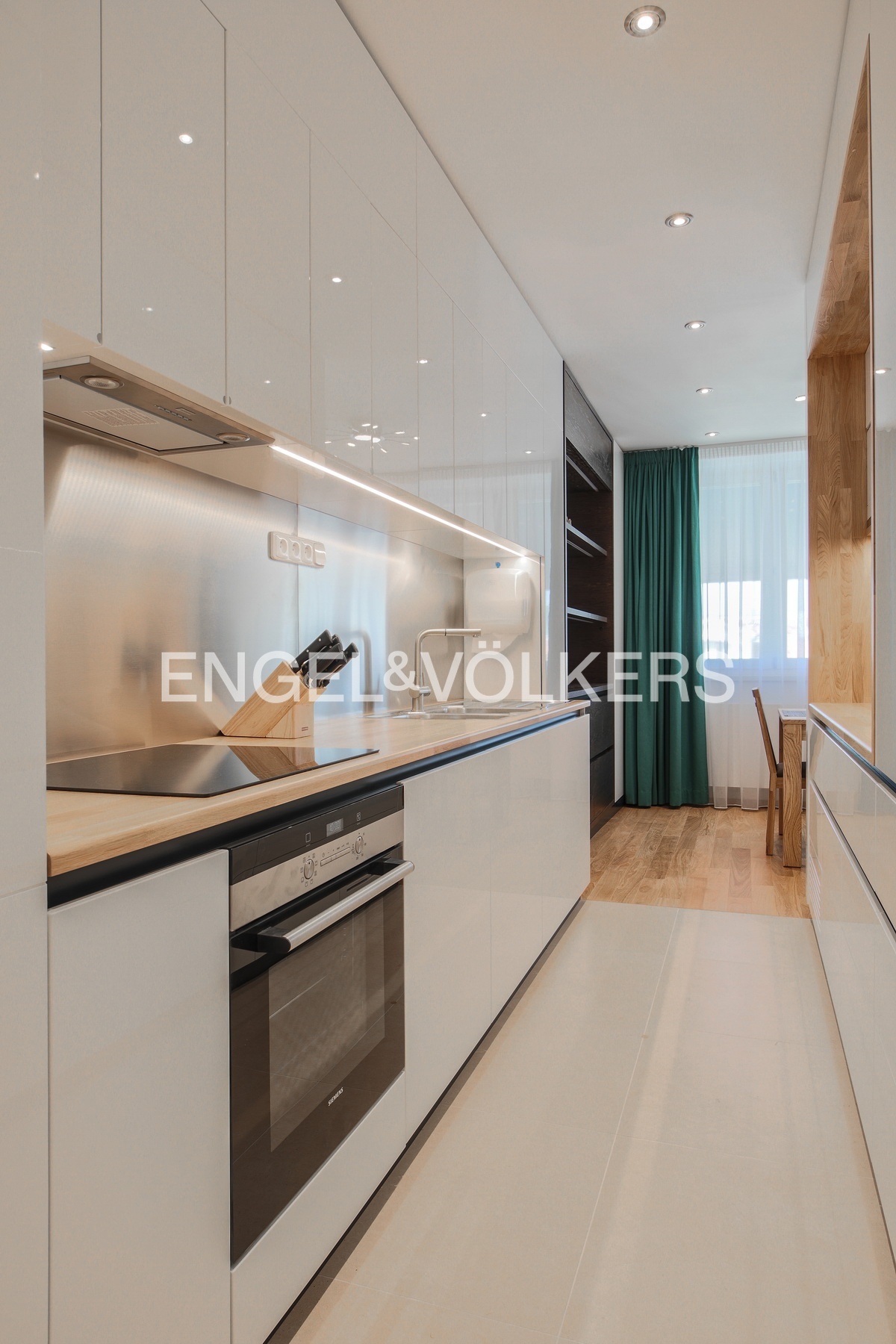 Z obývacího pokoje propojeného s kuchyní se vstupuje do hlavní ložnice, na prostorný balkon s elektrickou markýzou a nábytkem nebo do malé pracovny. Kuchyně je plně vybavena kvalitními spotřebiči včetně mikrovlnné trouby, toastovače nebo stroje na espresso. Kožená sedací souprava v obývacím pokoji může posloužit jako dvojlůžko, jídelní stůl lze rozložit tak, aby se najedlo až deset osob. Manželská postel v ložnici je elektricky polohovatelná s úložnými prostory a vysoce kvalitní speciální matrací. V obou zbylých ložnicích jsou vždy dvě lůžka s úložnými prostory a ke každému pokoji náleží šatna.