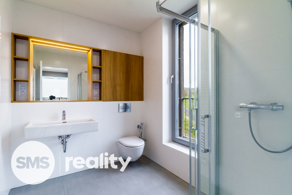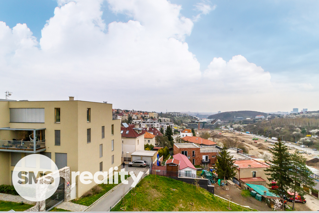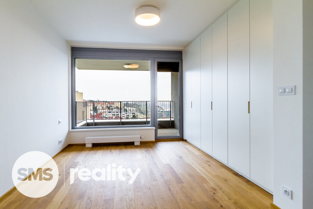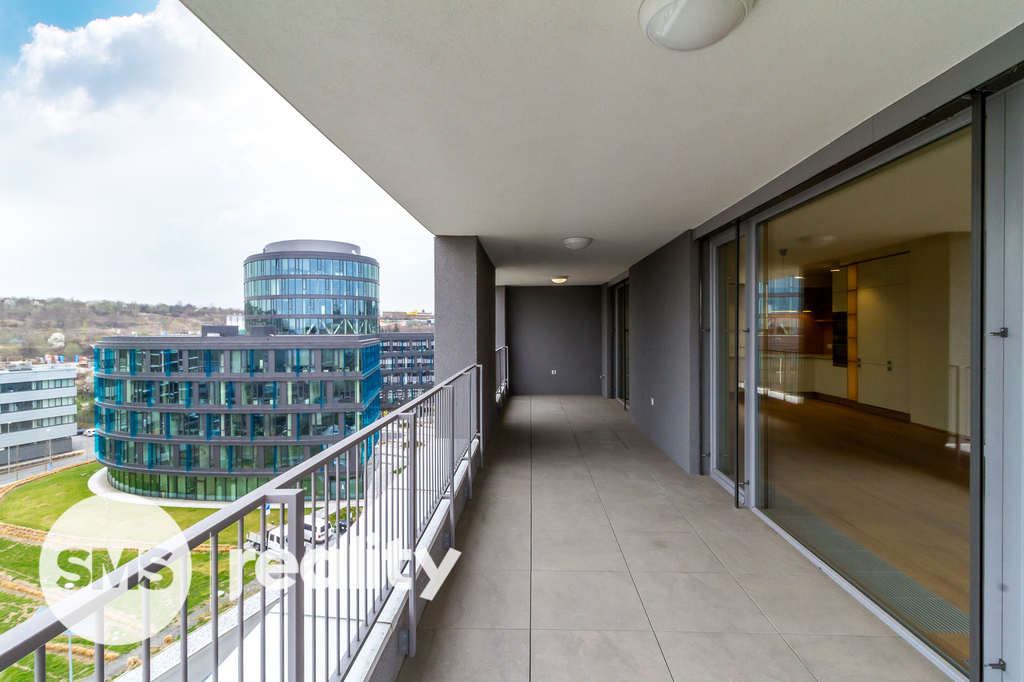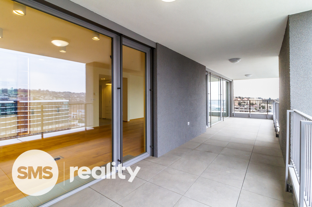 Atraktivní a světlý byt 4+kk (126 m2) s terasou (27 m2), balkonem (6 m2) a krásným výhledem na město je umístěný v nejvyšším patře oceňovaného projektu Rezidence Waltrovka na Praze 5. K bytu je možné si dále pronajmout až dvě parkovací místa v suterénu domu.