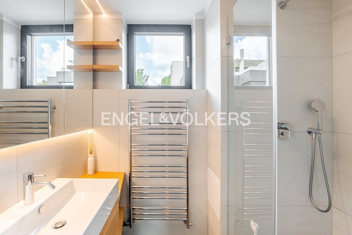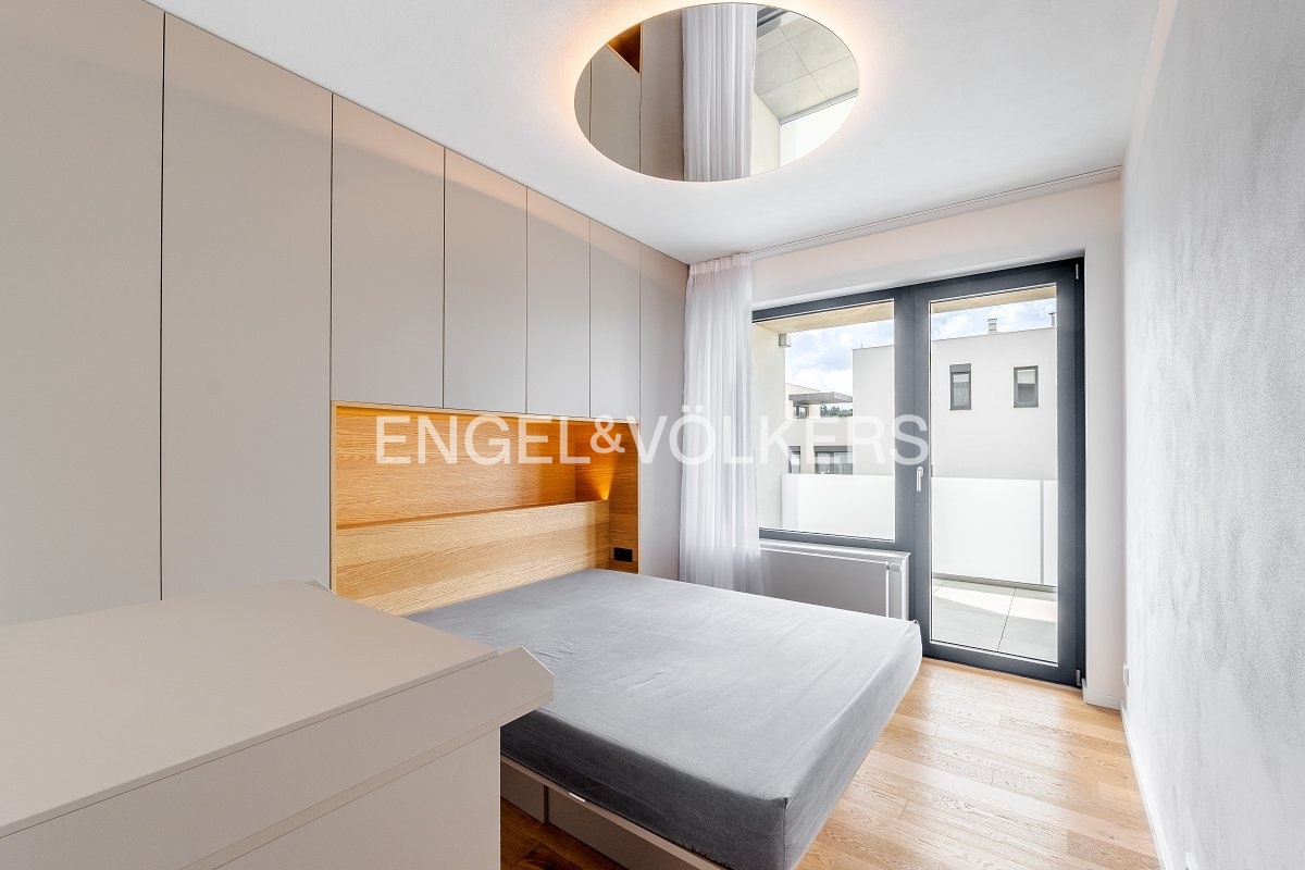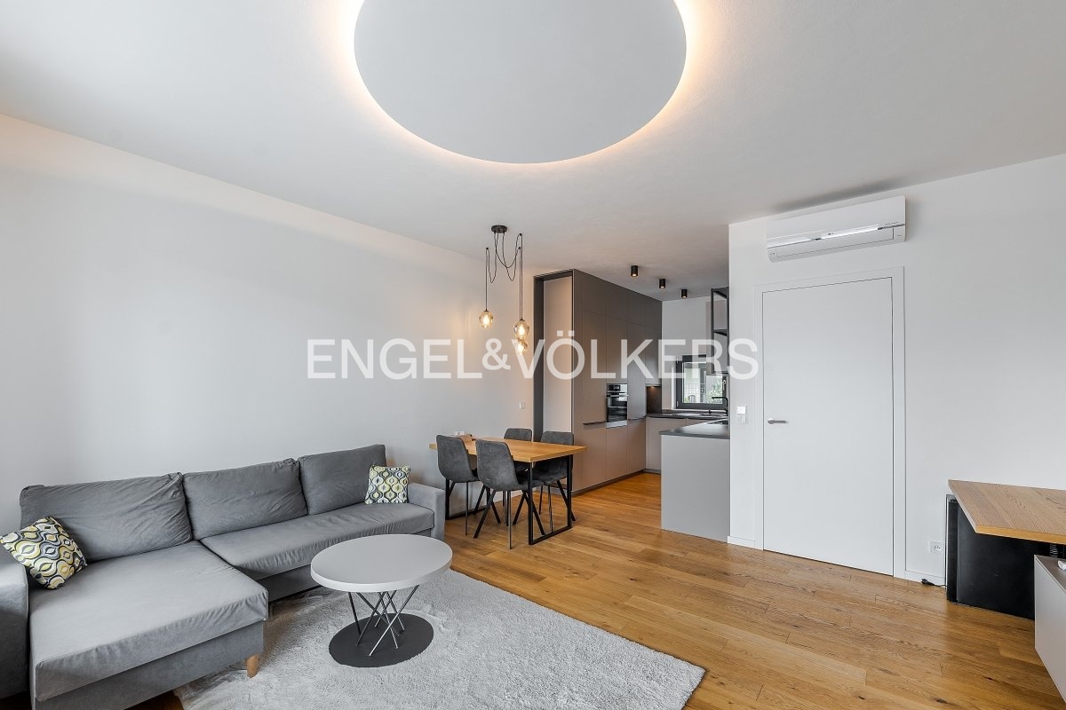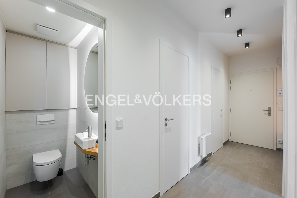 Nabízíme k dlouhodobému pronájmu krásný a světlý byt s dispozicí 2+kk, který se nachází ve 2. nadzemním podlaží moderní novostavby s výtahem. Byt je kompletně a vkusně zařízený, připravený k okamžitému nastěhování. Interiér je laděný do příjemných neutrálních tónů a působí velmi vzdušně a elegantně.