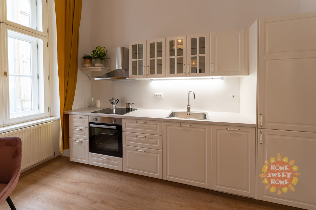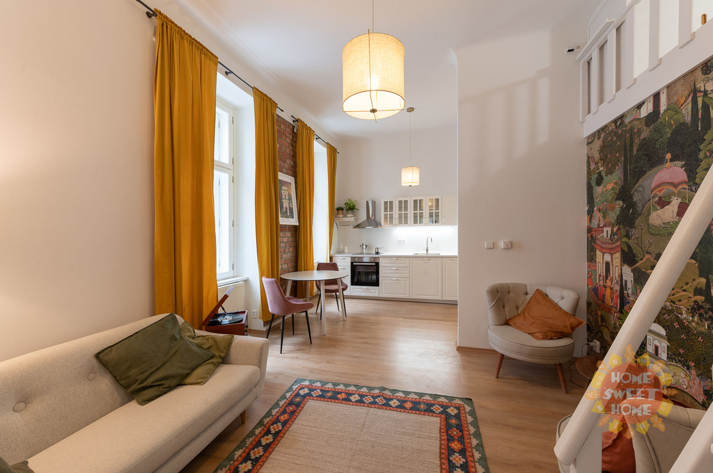 Nabízíme k pronájmu plně vybavený byt 2+kk o celkové rozloze 56m2, který se nachází v prvním patře cihlového domu s výtahem v ulici Mikovcova, Praha - Vinohrady. Byt je po kompletní rekonstrukci a je moderně vybavený. Byt sestává z chodby, obývacího pokoje s kuchyňskou linkou a patrem na spaní, jednou ložnicí, koupelnou s vanou, pračkou a zvlášť toaletou. Kuchyňská linka je plně vybavena elektrickými spotřebiči: varná deska, horkovzdušná trouba, digestoř, myčka, lednice s mrazničkou. Byt se nachází pouze 200m od tramvajové zastávka a stanice metra linky C - I.P.Pavlova, výborné napojení na Městský okruh. Pouze 5 min. chůze na Václavské náměstí. V okolí naleznete kompletní občanskou vybavenost: kavárny, restaurace, obchody, pošta, 1.lékařská fakulta UK, divadlo na Vinohradech, Národní muzeum, Státní opera, Riegrovy sady, farmářské trhy a mnoho dalšího.