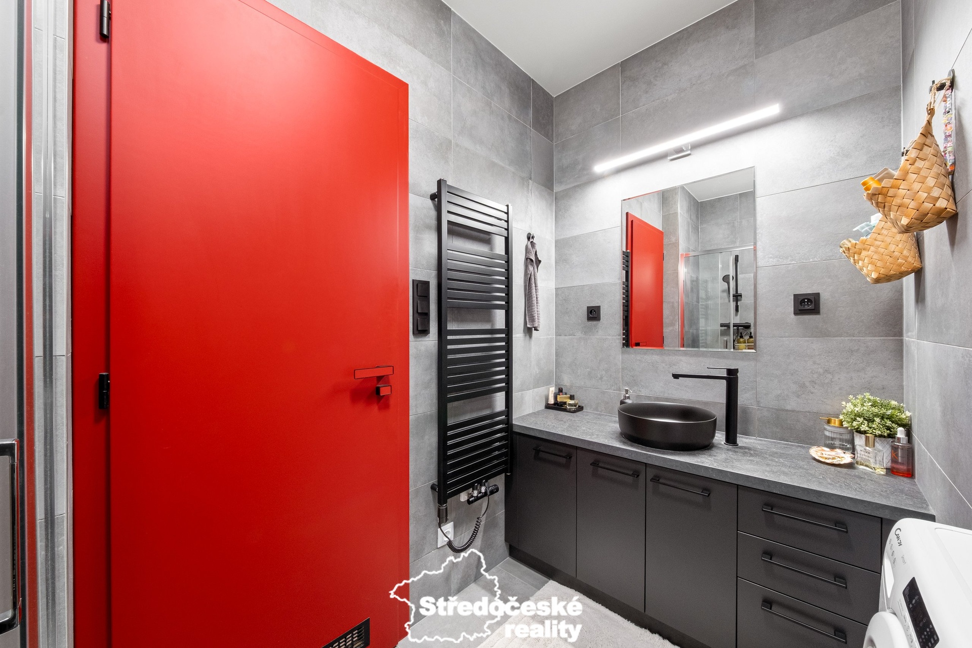 - koupelnu se sprchovým koutem, WC a topným žebříkem