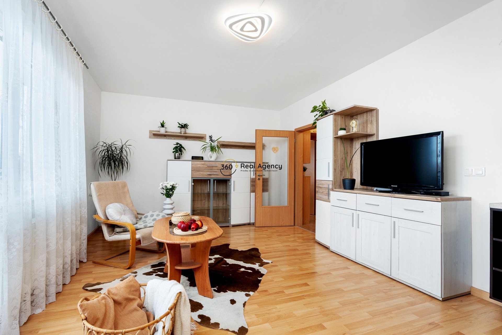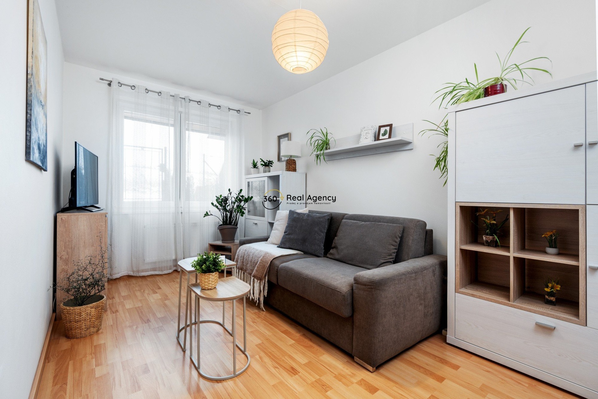 Byt je ve velmi dobrém technickém stavu a nevyžaduje žádné investice. Dispozici tvoří prostorný obývací pokoj s kuchyňským koutem (26,19 m²), ložnice (14,26 m²), koupelna s WC (3,96 m²) a předsíň (4,38 m²). Díky velkým oknům a západní orientaci je interiér velmi světlý a vzdušný. Standard dále zahrnuje plastová okna s dvojskly, plovoucí podlahy a dálkové vytápění.