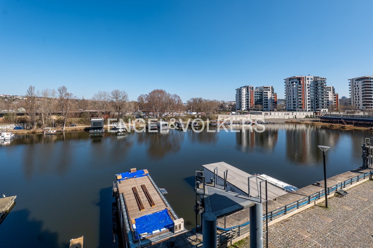 Dispozice zahrnuje dvě světlé neprůchozí místnosti – obývací pokoj s plně vybavenou kuchyňskou linkou a samostatnou ložnici. Obě místnosti mají přímý vstup na prostornou východně orientovanou lodžii vybízející k příjemnému posezení s výhledem na řeku. Koupelna je vybavena vanou, sprchovým koutem, dvěma umyvadly, toaletou a vytápěnou podlahou. Součástí bytu je i druhá samostatná toaleta a technická místnost. Byt je nabízen částečně zařízený, případně dle dohody. 2x LAN a TV/R zásuvky v každé místnosti.